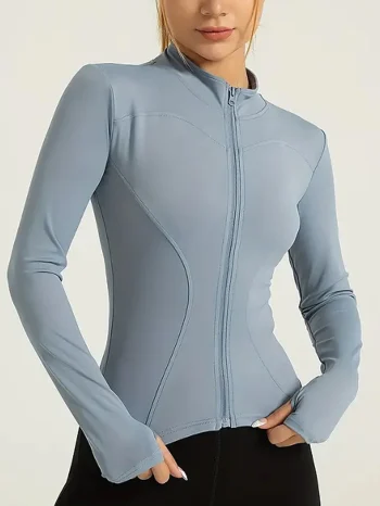 Fitness wear long-sleeved female Internet celebrity slimming stand-up collar sports jacket training clothes slimming running ₹429 – ₹593Price range: ₹429 through ₹593