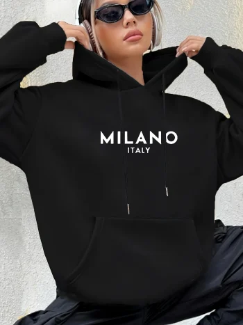 Milano Italy Polyester Hoodie for Women 100% Knit Fabric Alphabet Print Casual Long Sleeve Sweatshirt with Pocket ₹1,512 – ₹1,938Price range: ₹1,512 through ₹1,938