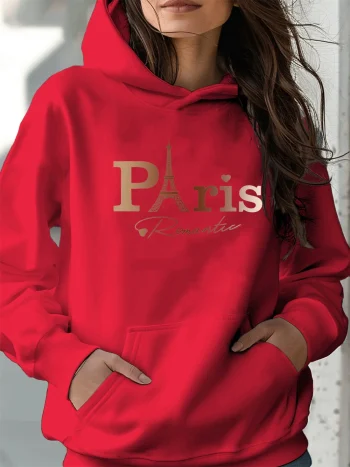Women’s autumn and winter warm and loose casual Paris pattern printed suede long sleeved hooded sweatshirt ₹429 – ₹785Price range: ₹429 through ₹785