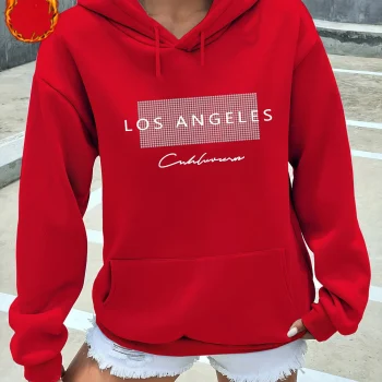 Women’s autumn and winter warm and loose casual Los Angeles letter pattern printed suede long sleeved hooded sweatshirt ₹429 – ₹785Price range: ₹429 through ₹785