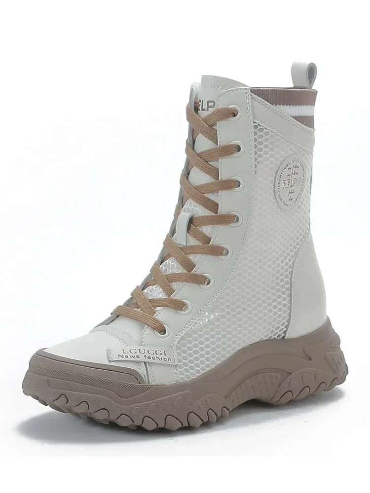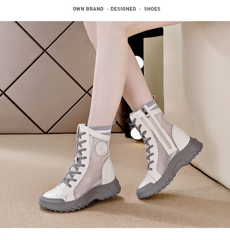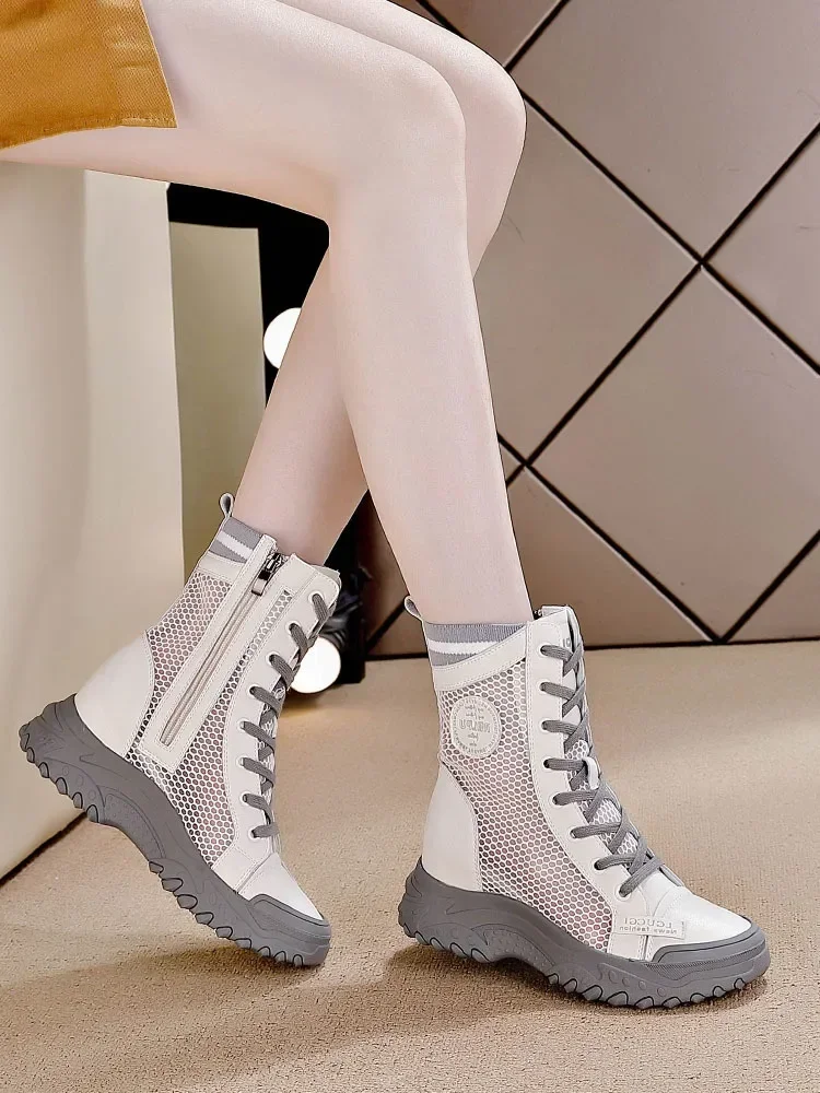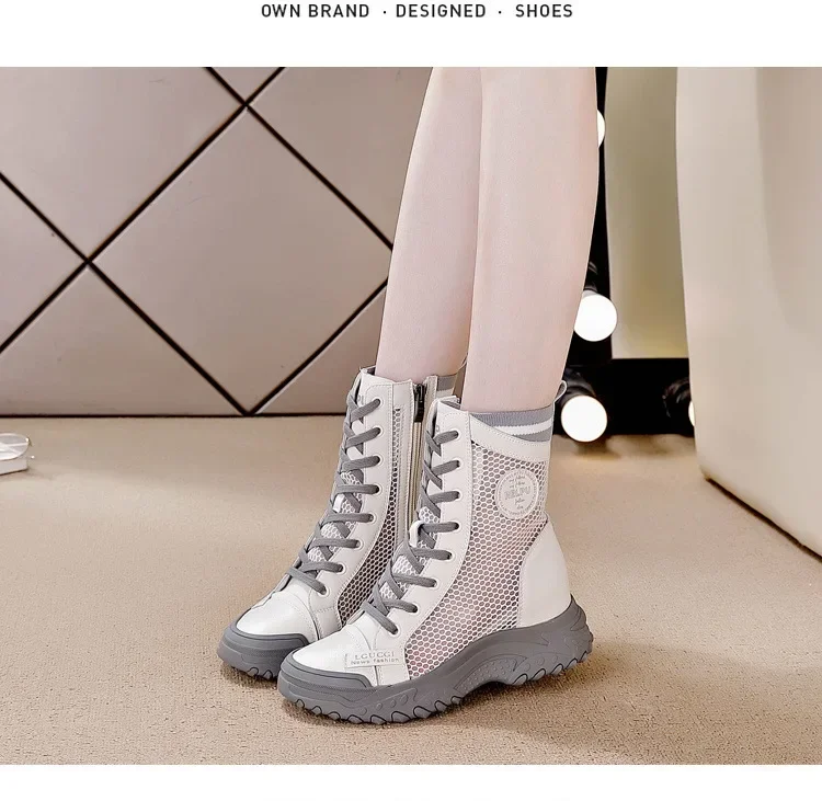 2024 New Fashion Women’s Spring Summer Boots Mid-calf Increased Heel Short Breathable Thin Hollow Out Casual Boots