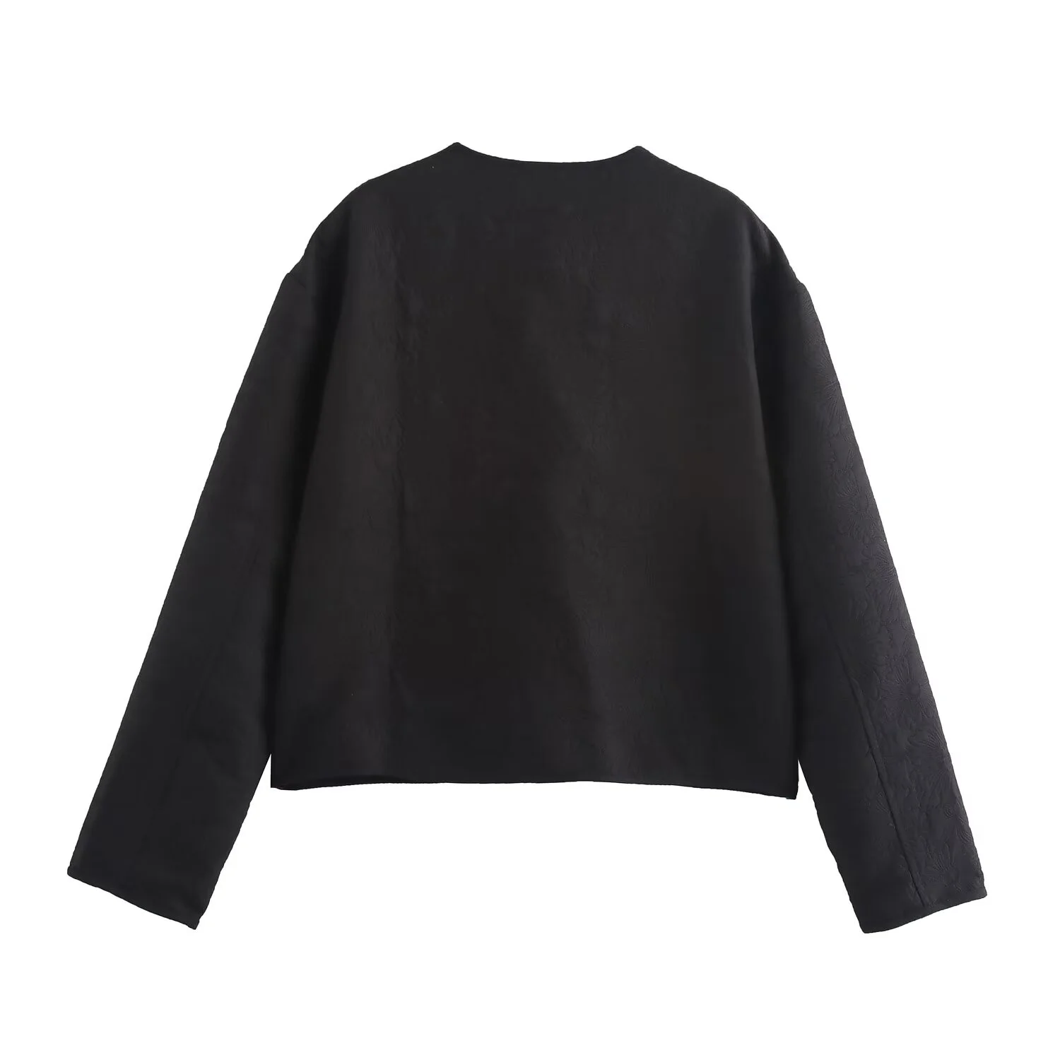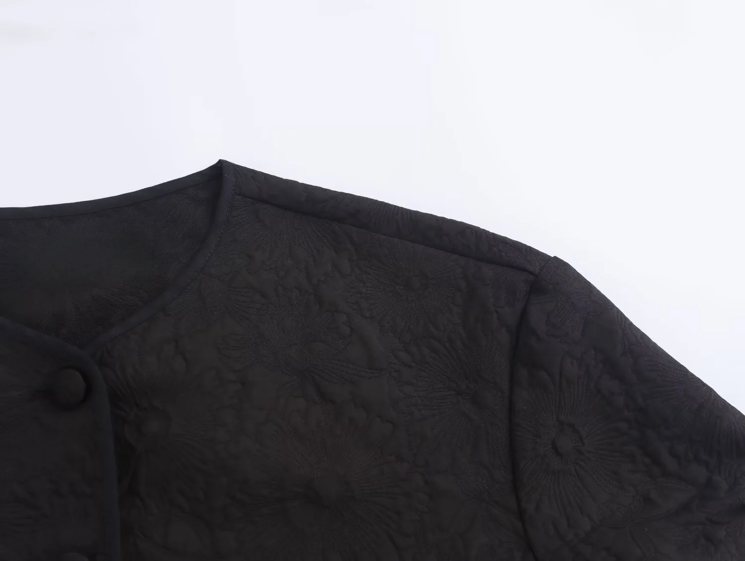 2025 Autumn New Women’s Casual Fashion Versatile Flower Embroidered Round Neck Long Sleeve Short Jacket Coat