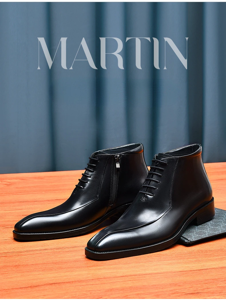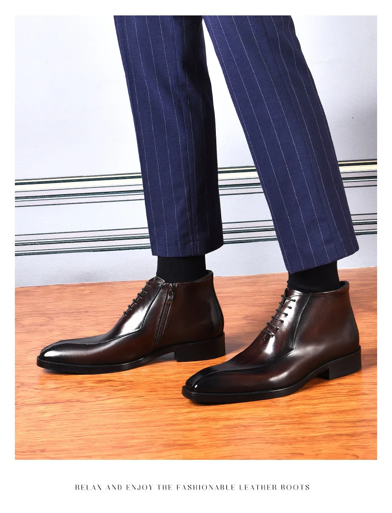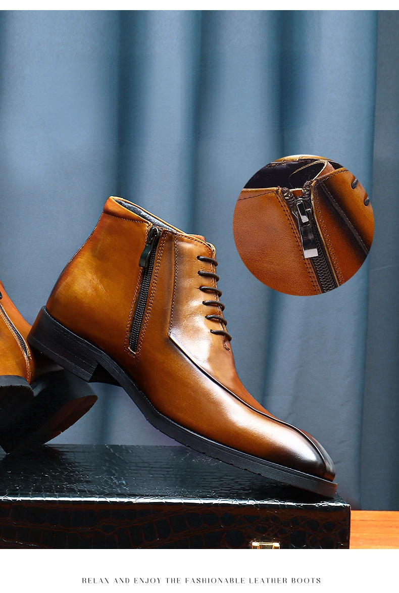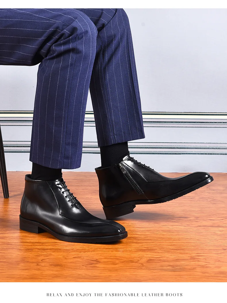 2025 Luxury British Trend Mens Boots Luxury Genuine Leather Autumn Man Business Social Ankle Boots Shoes with Side Zip Size 46