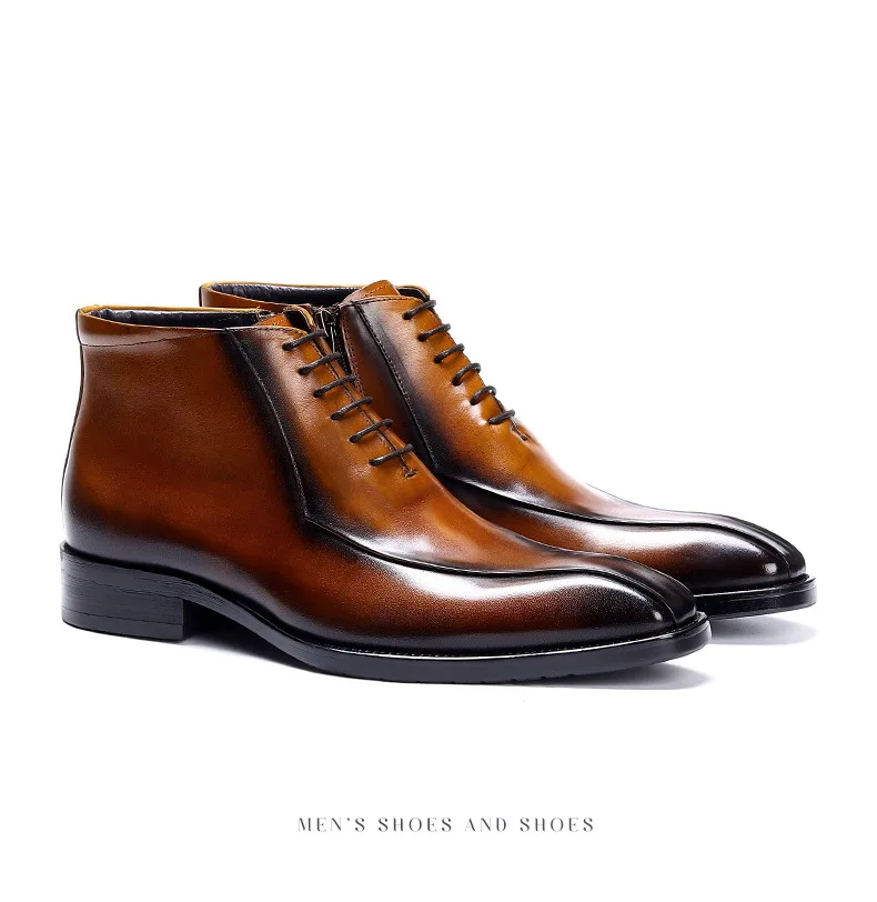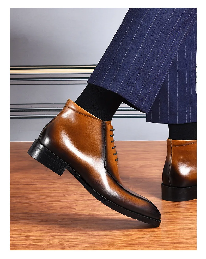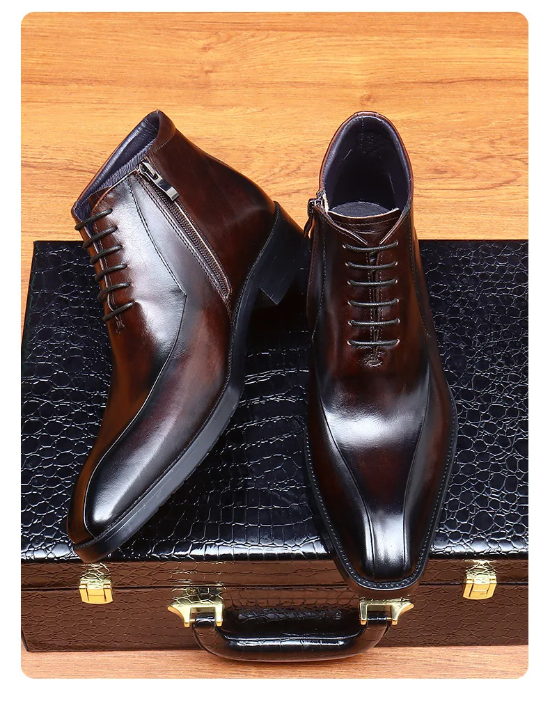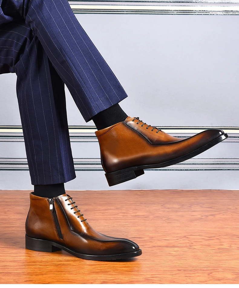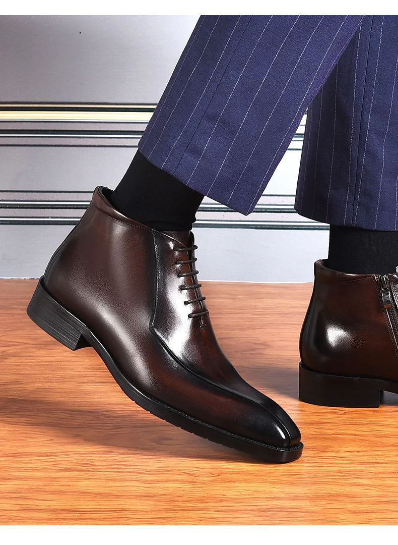2025 Luxury British Trend Mens Boots Luxury Genuine Leather Autumn Man Business Social Ankle Boots Shoes with Side Zip Size 46