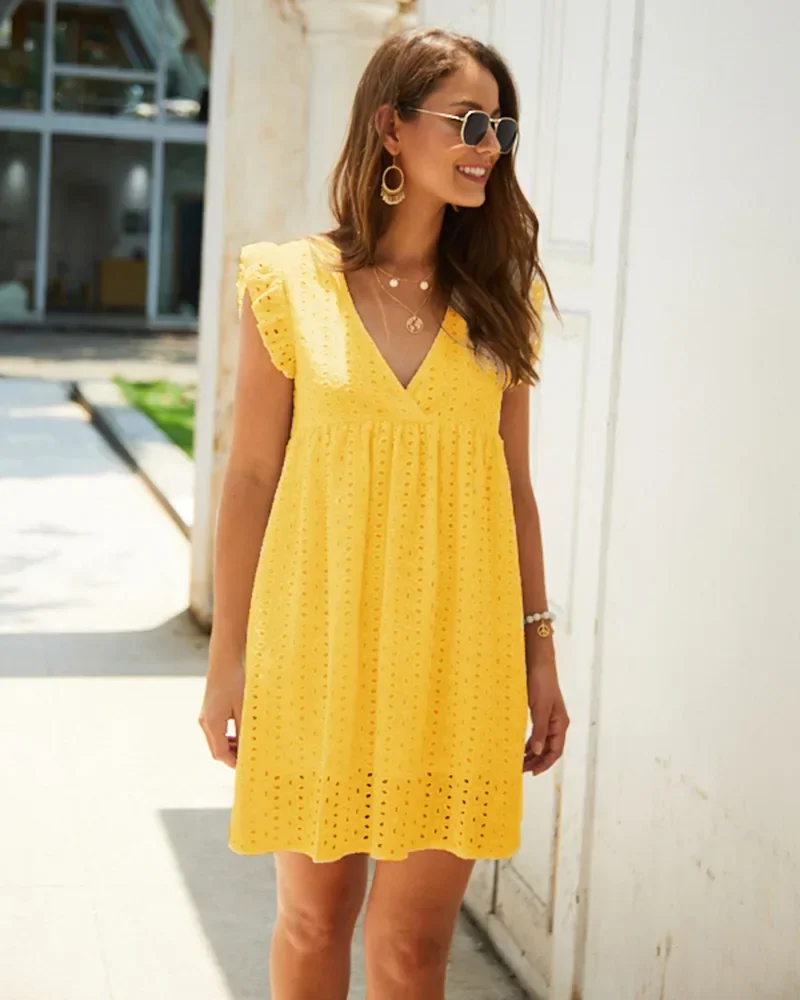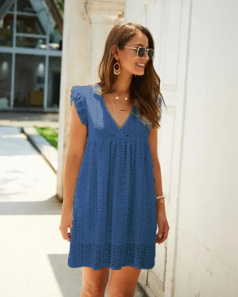 • Short Skirt Length : The short skirt length adds a playful touch to the dress, making it suitable for both casual outings and semi-formal events.