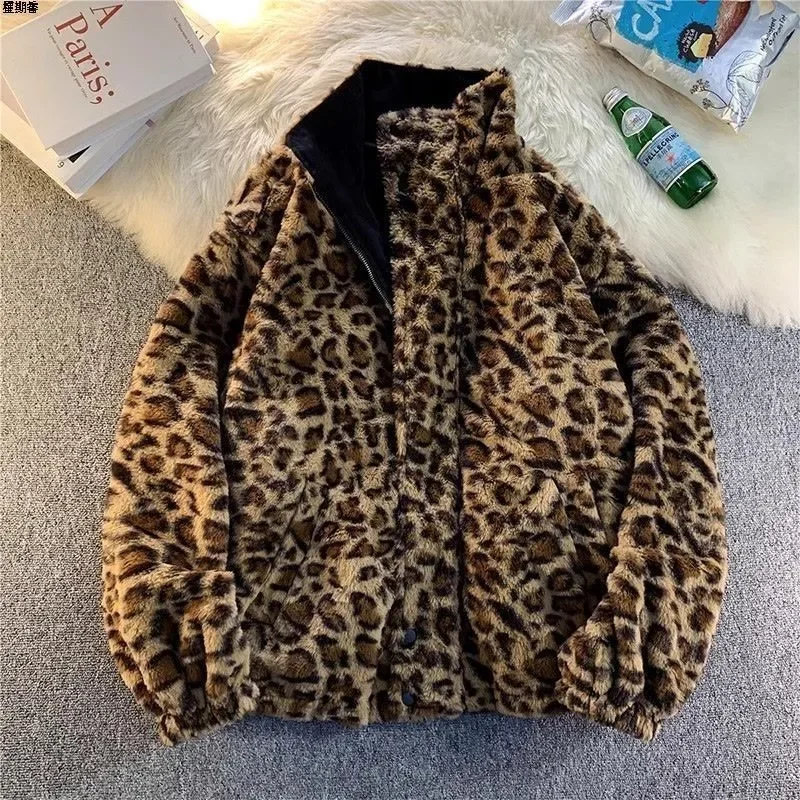 Be the first to review “American retro double-sided leopard print cotton jacket vintage warm coat thick lambskin cotton jackets for women winter clothes”