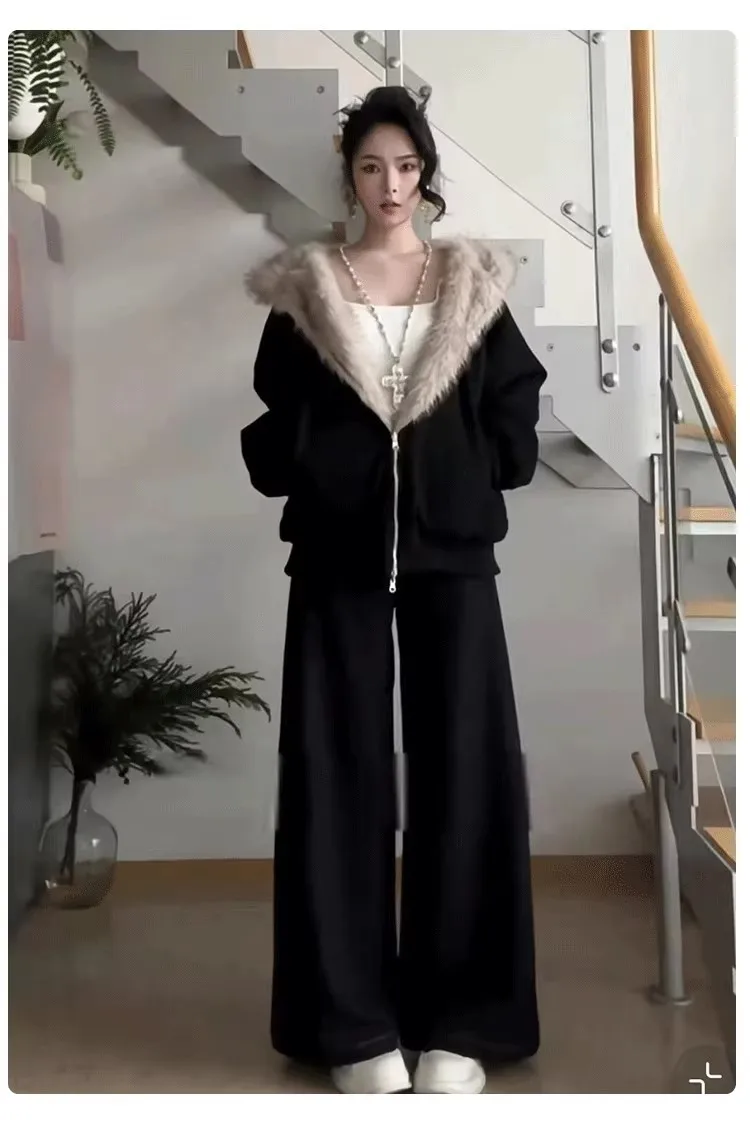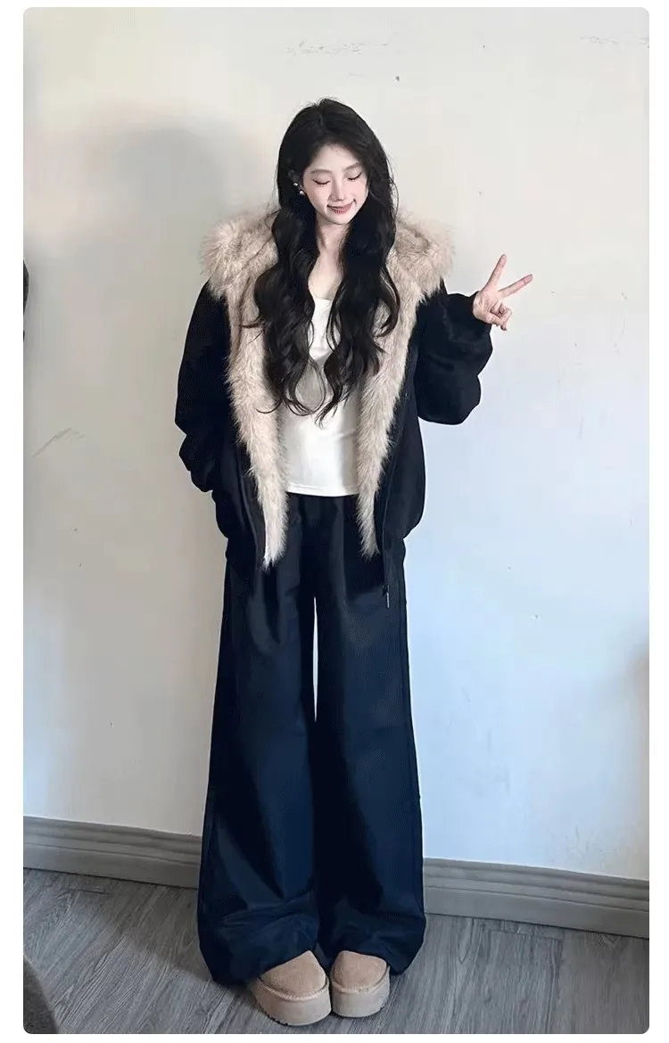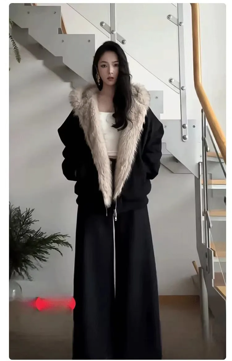 Be the first to review “American Retro Fur Collar Hooded Jacket Women Y2K Streetwear Winter New Velvet Thickened Warm Harajuku Loose Casual Jacket”