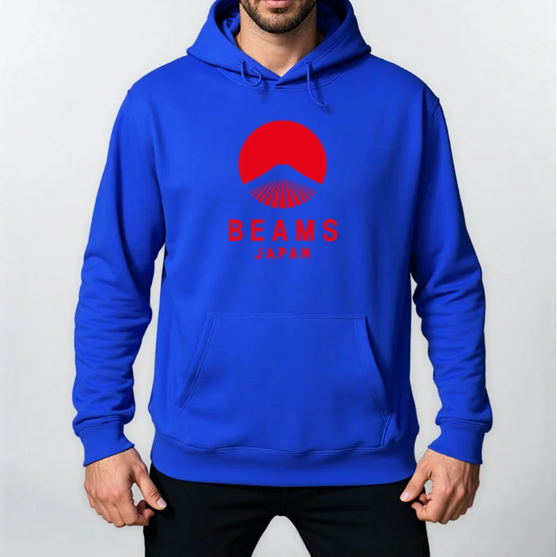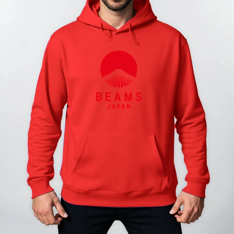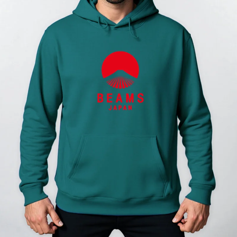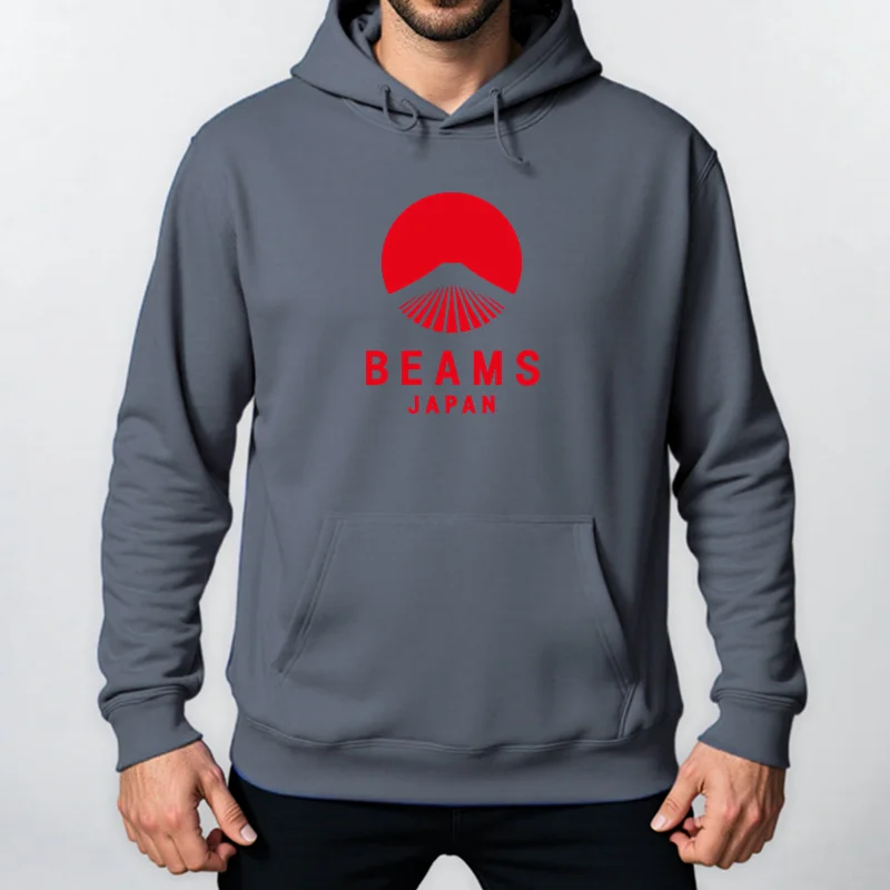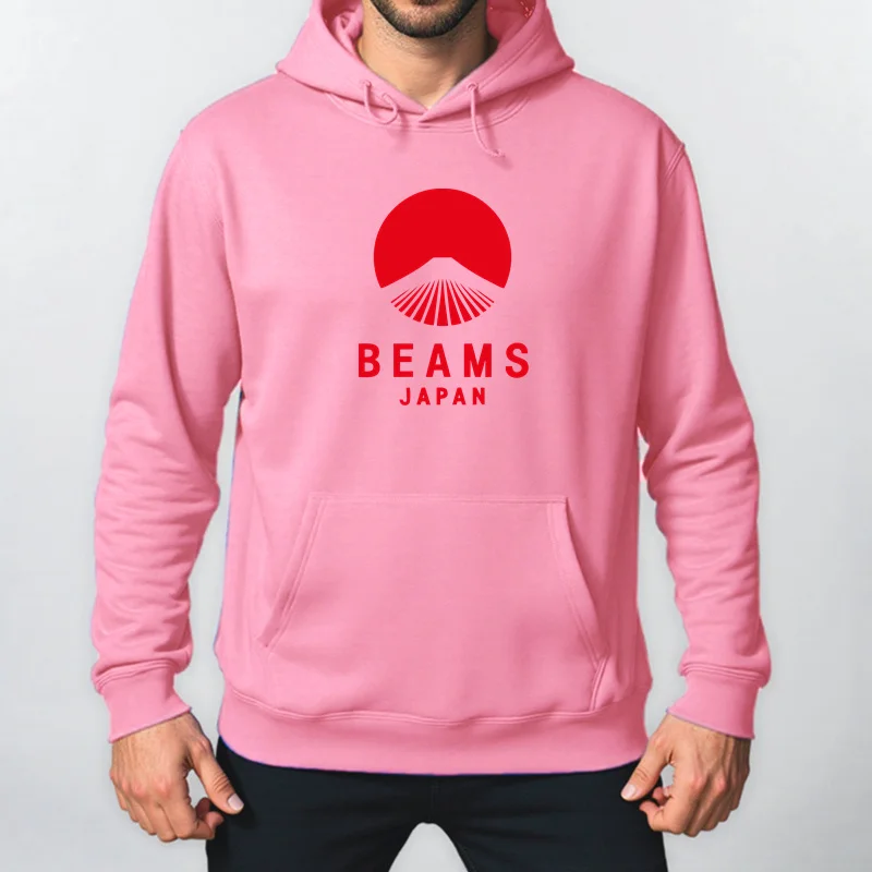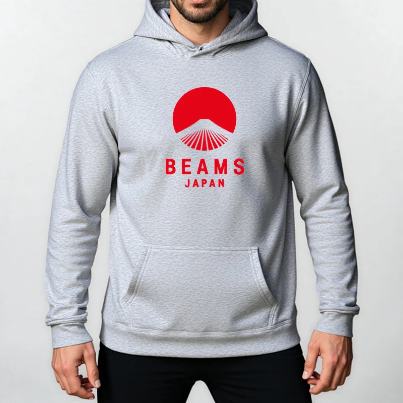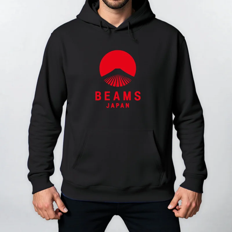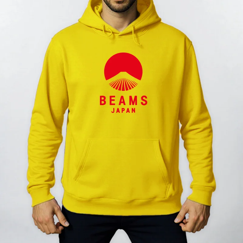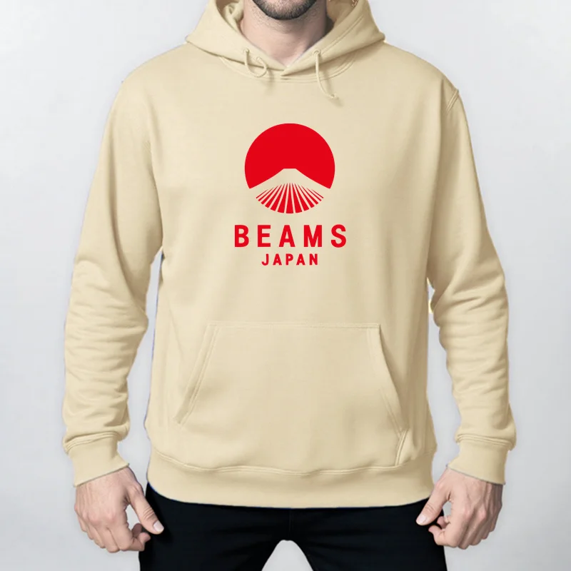 Autumn Winter BEAMS JAPAN Print Hoody Men Fashion Casual Long Sleeves Hooded Loose Oversize Pullover Hoodie Street Sweatshirt