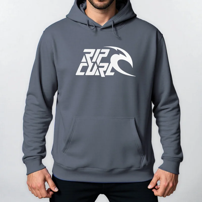 Autumn Winter New Fashion Loose Rip Curl Skateboard Hoodie Tops Solid Colour Hooded Polyester Men’S Sweatshirt Simple Casual