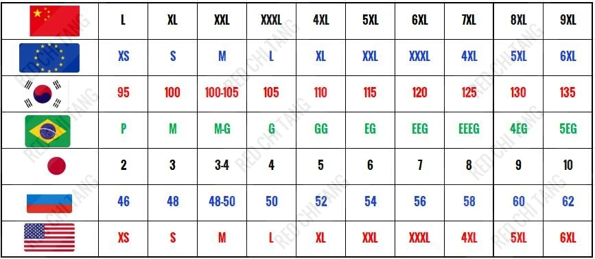 For example, if your European size is XL, your Chinese size would most likely be 4XL.
