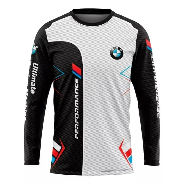 BMW MOTO Racing Style Black And White Color Block Splicing Cycling Suit Printed High Performance Sports Long Sleeved T Shirt