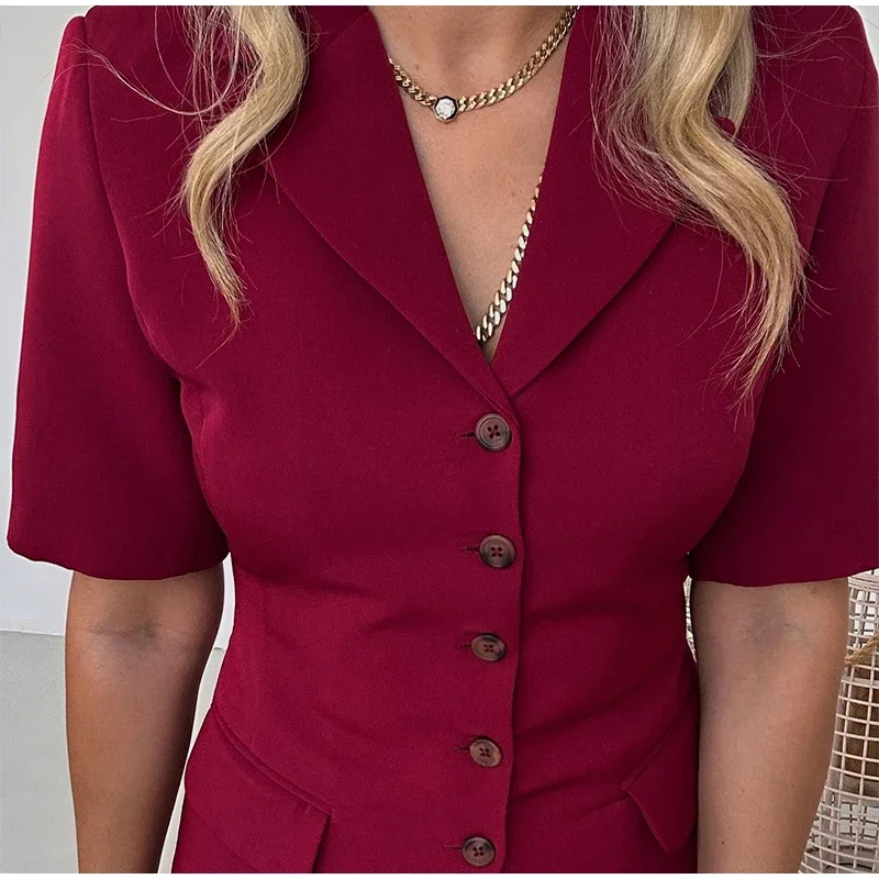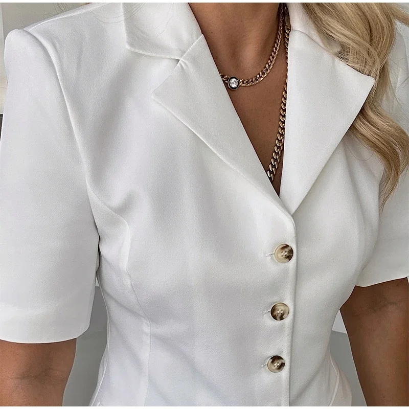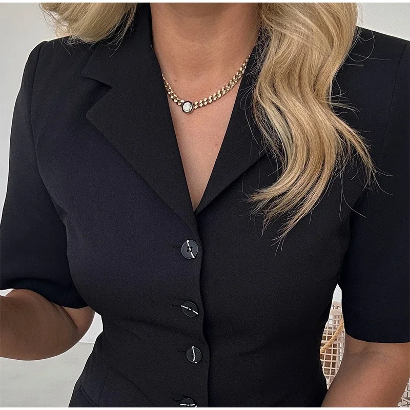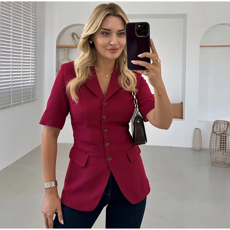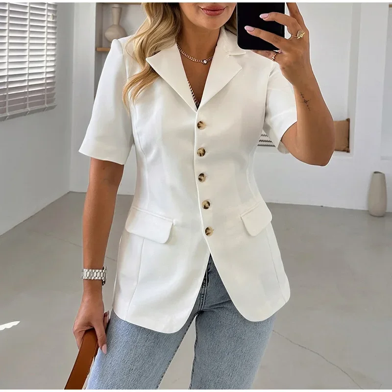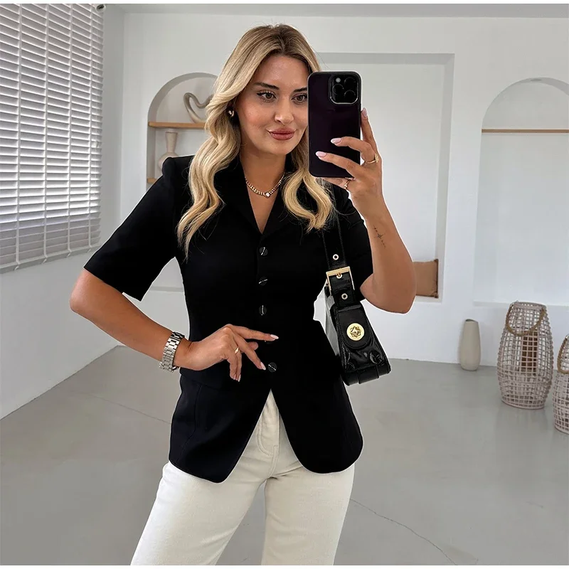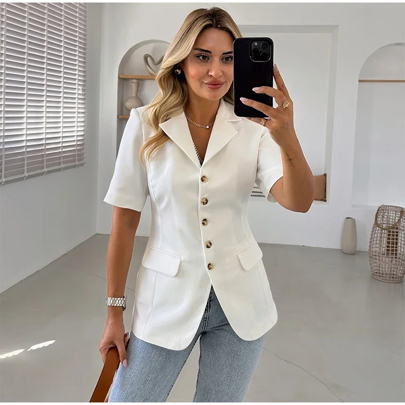 Elegant Women’s Solid Blazers Slim Lapel Single Breasted Short Sleeve Female Jacket 2025 Spring Summer Lady Office Outwears