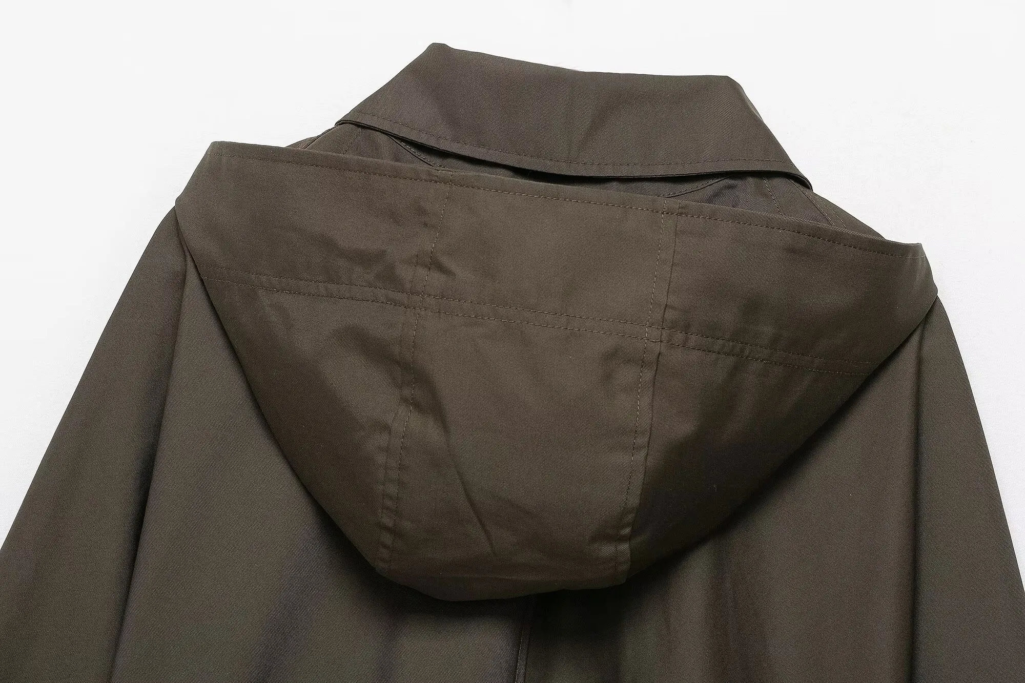 HH Female New Autumn Causal Solid Hooded Trench Coat Long Sleeve Single Breasted Lapel With Pockets Women’s Fashion Jackets