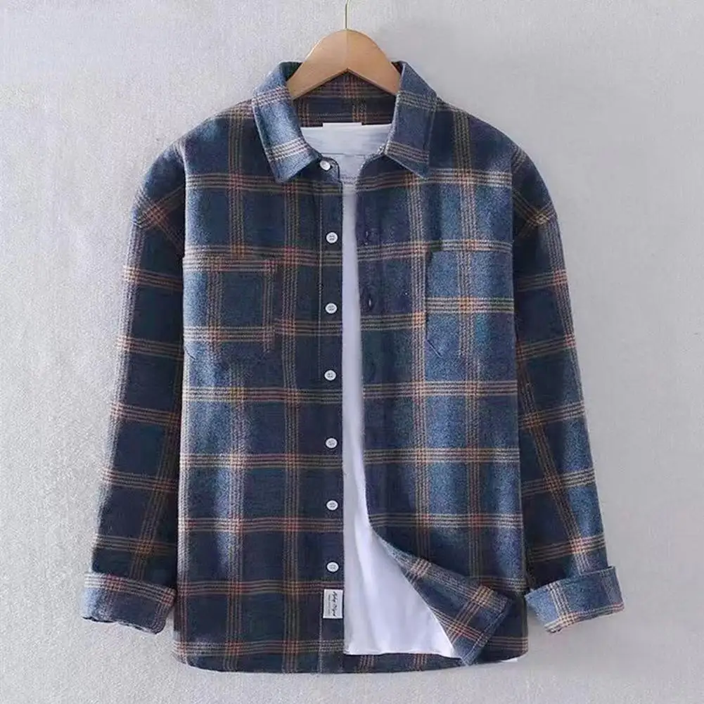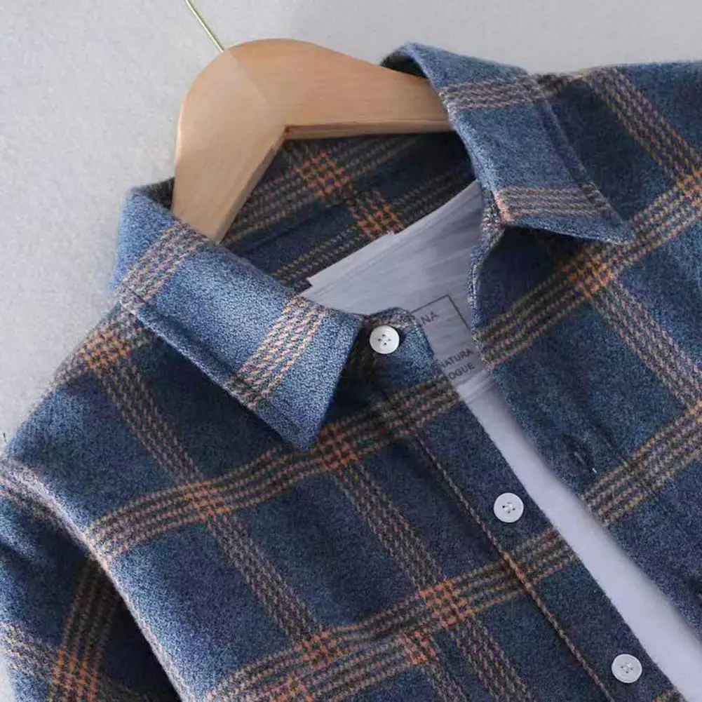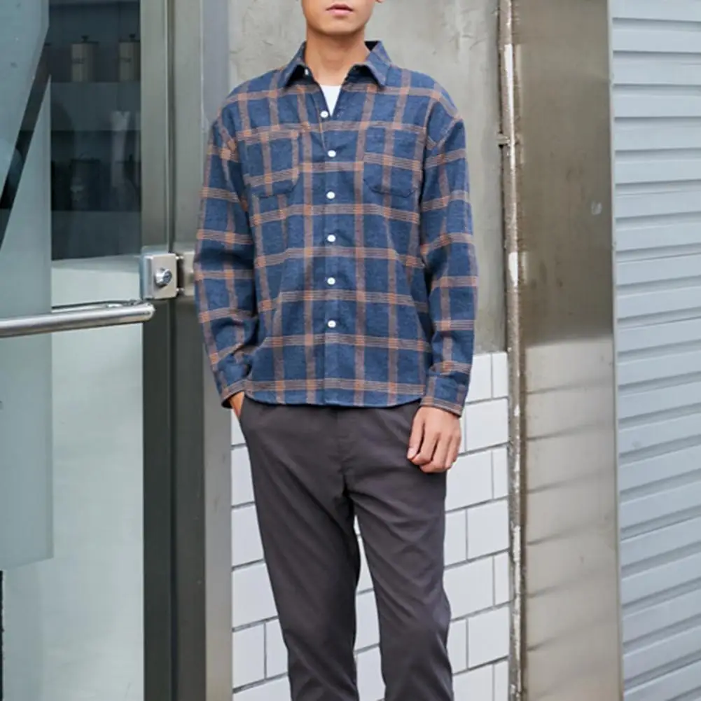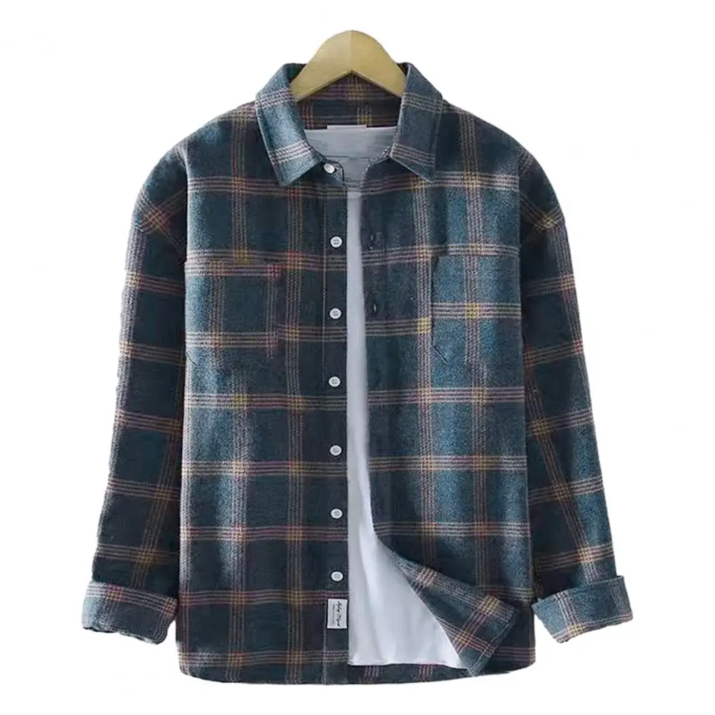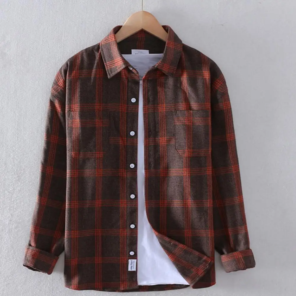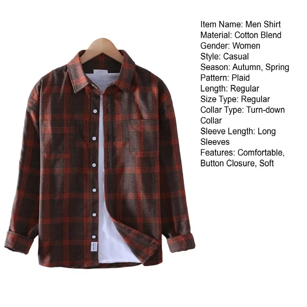 Men Causal Plaid Shirt Spring Fall Turn-down Collar Button Closure Regular Fit Soft Male Sweatshirt Long Sleeves Top Menswear