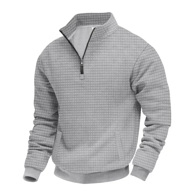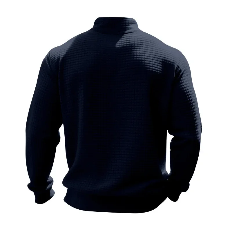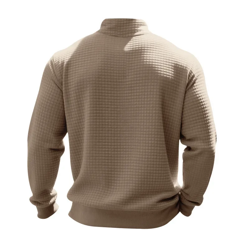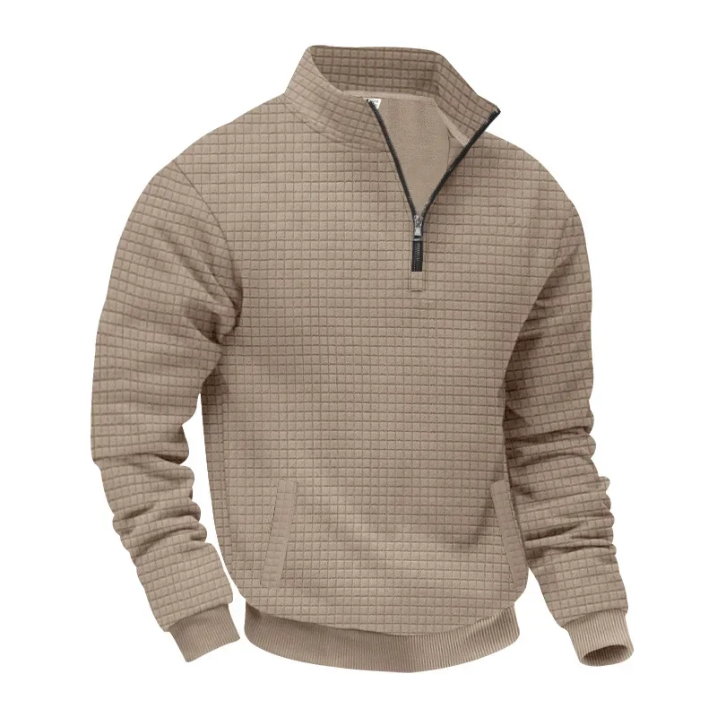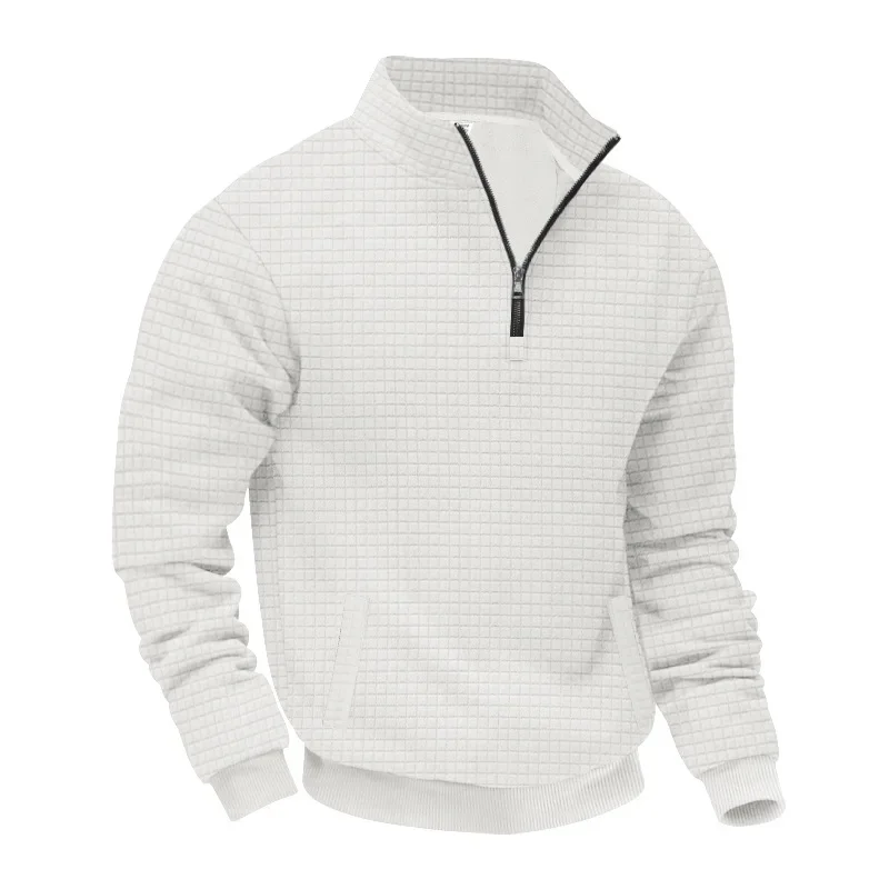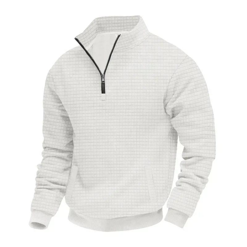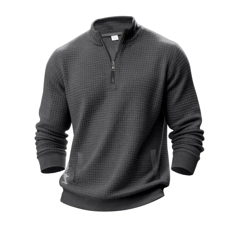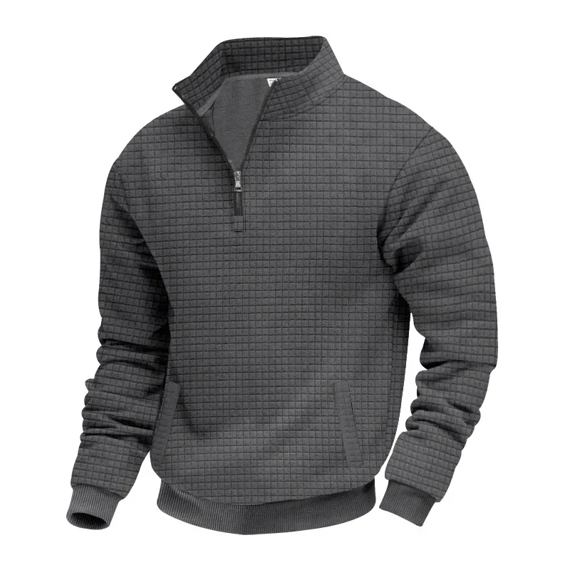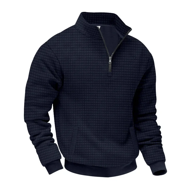 Men’s Large Size Semi-Zipper Sweater Autumn Winter Jacquard Small Checkered Stand-up Collar Casual Pullover