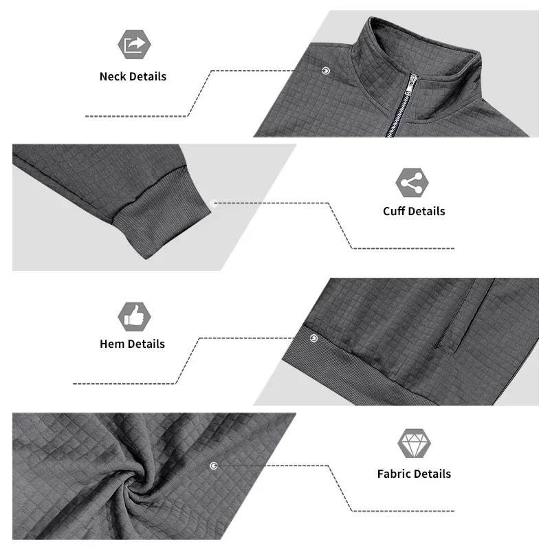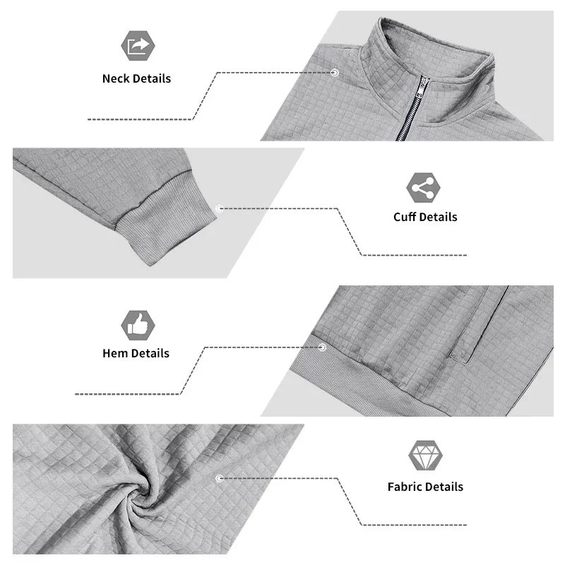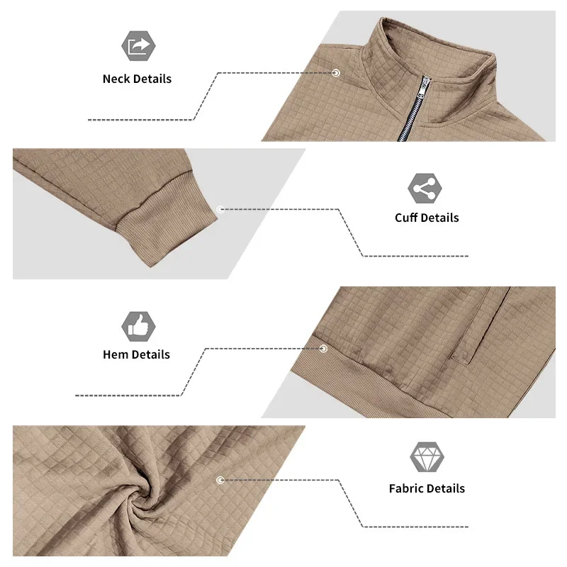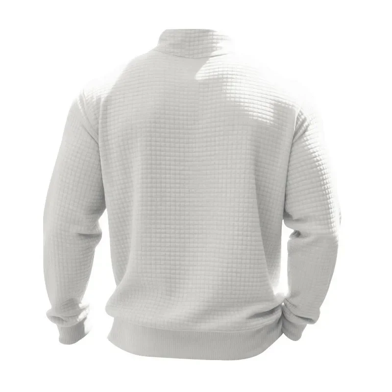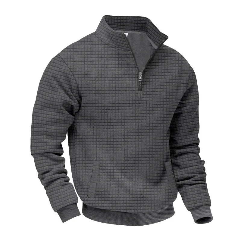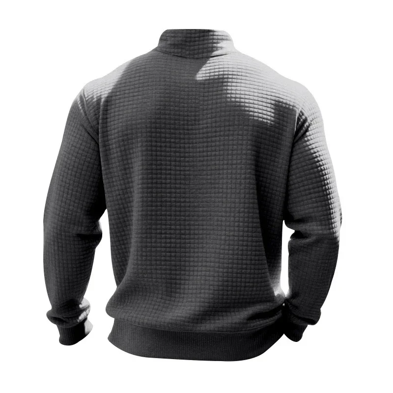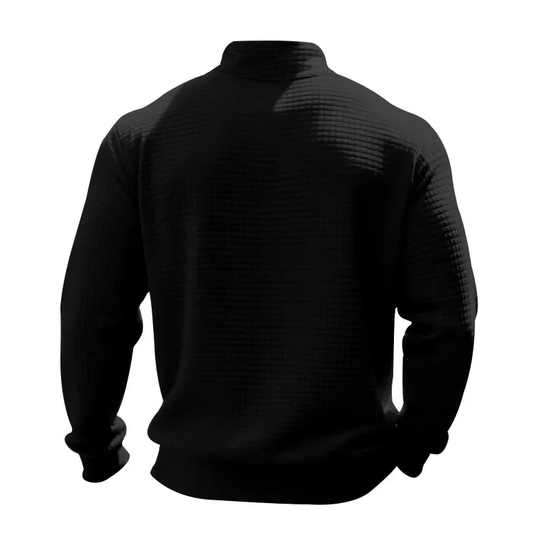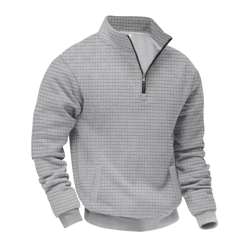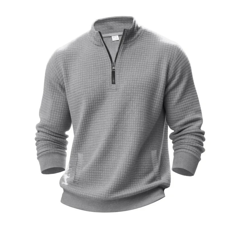 Men’s Large Size Semi-Zipper Sweater Autumn Winter Jacquard Small Checkered Stand-up Collar Casual Pullover