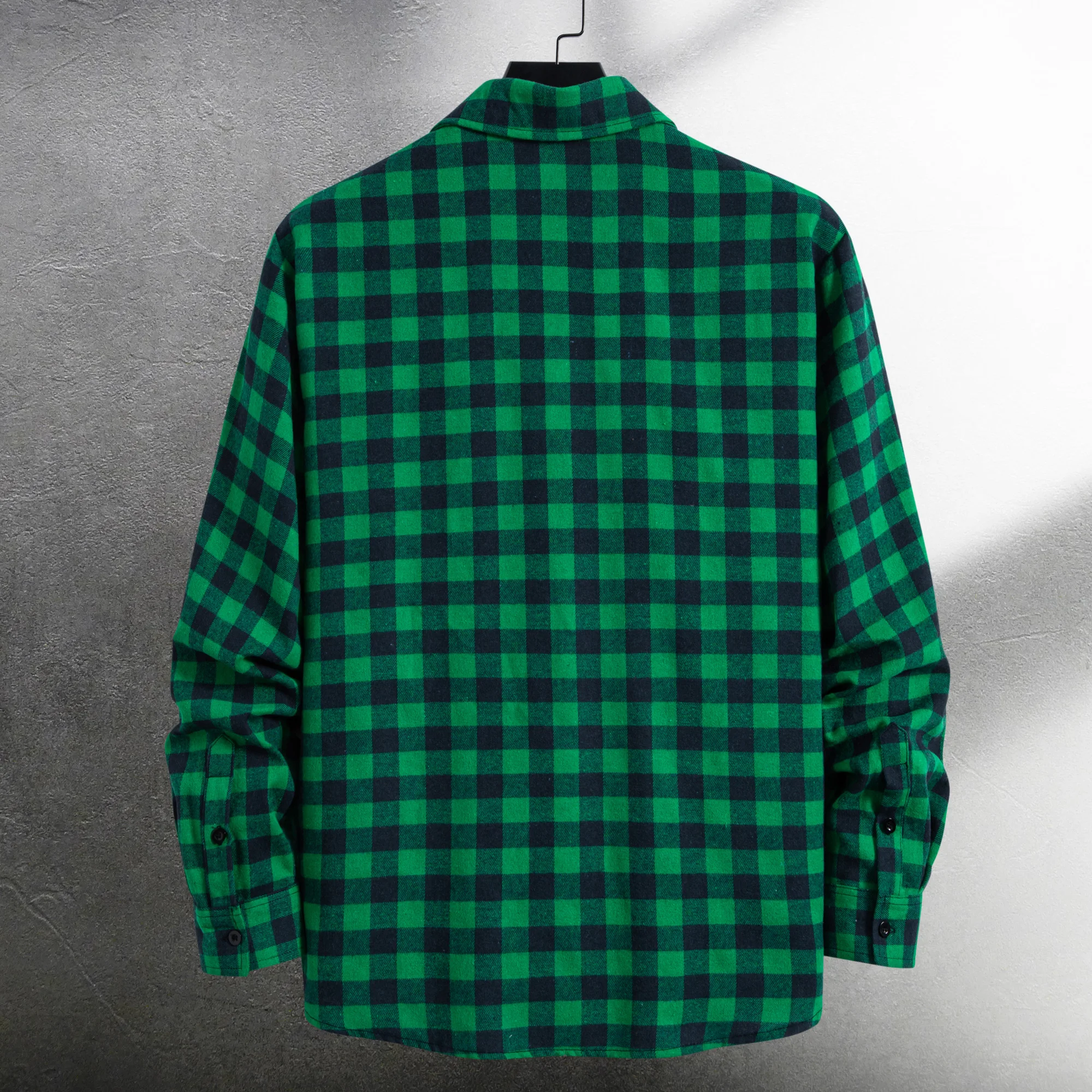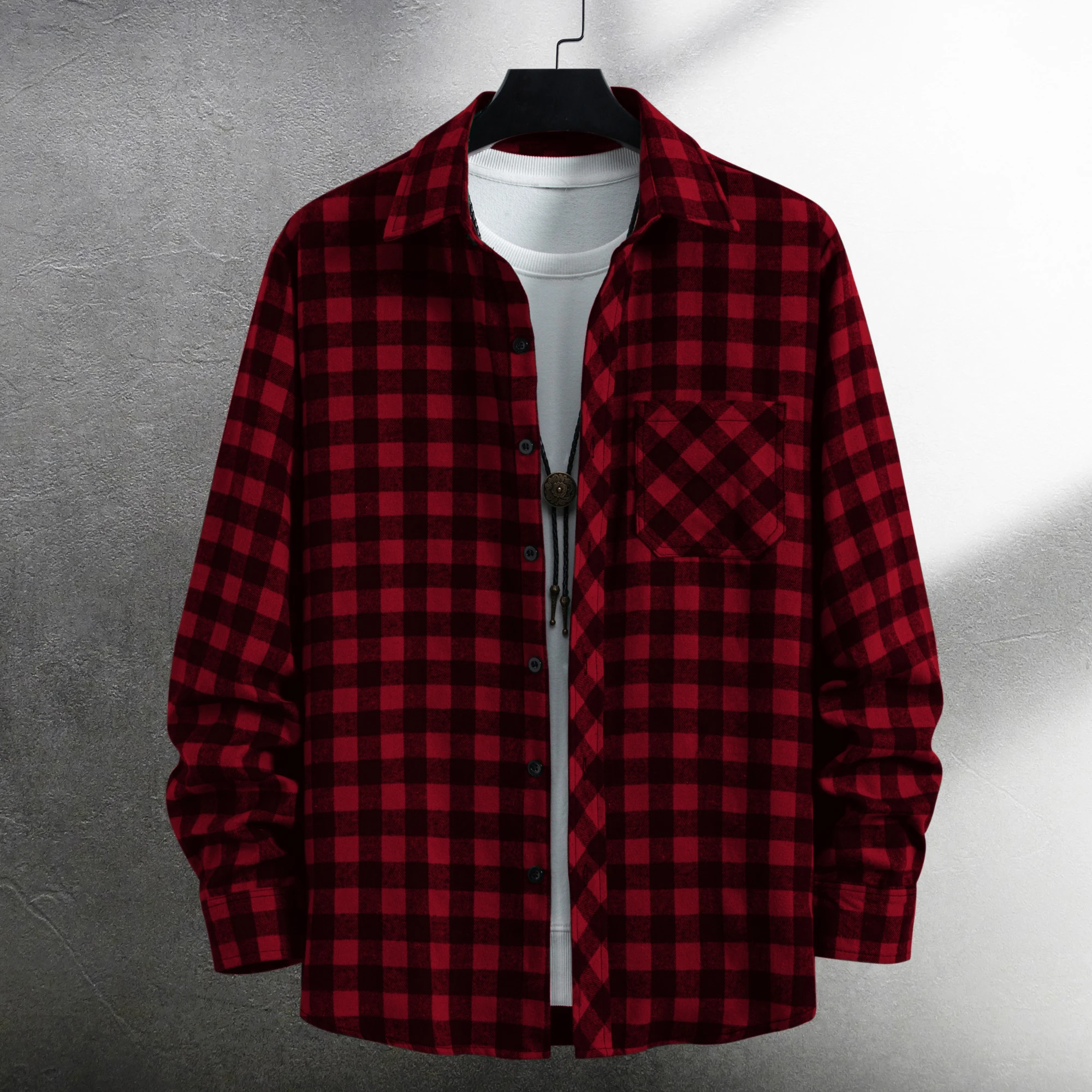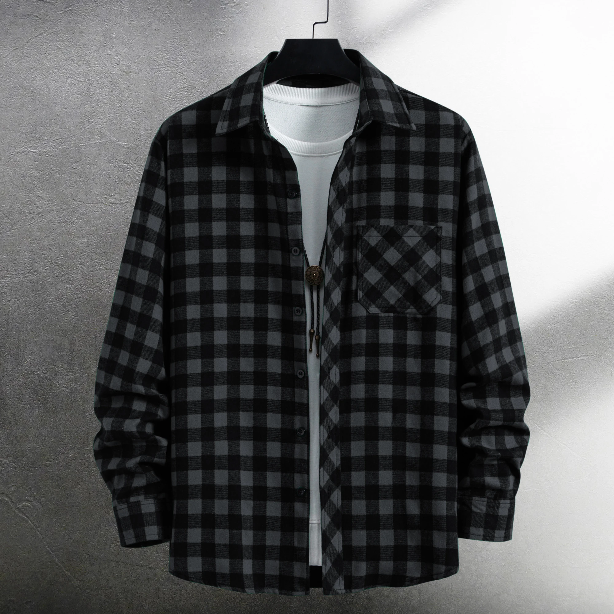 Men’s long-sleeved lapel all-match plaid shirt spring and autumn fashion casual outdoor men’s shirt