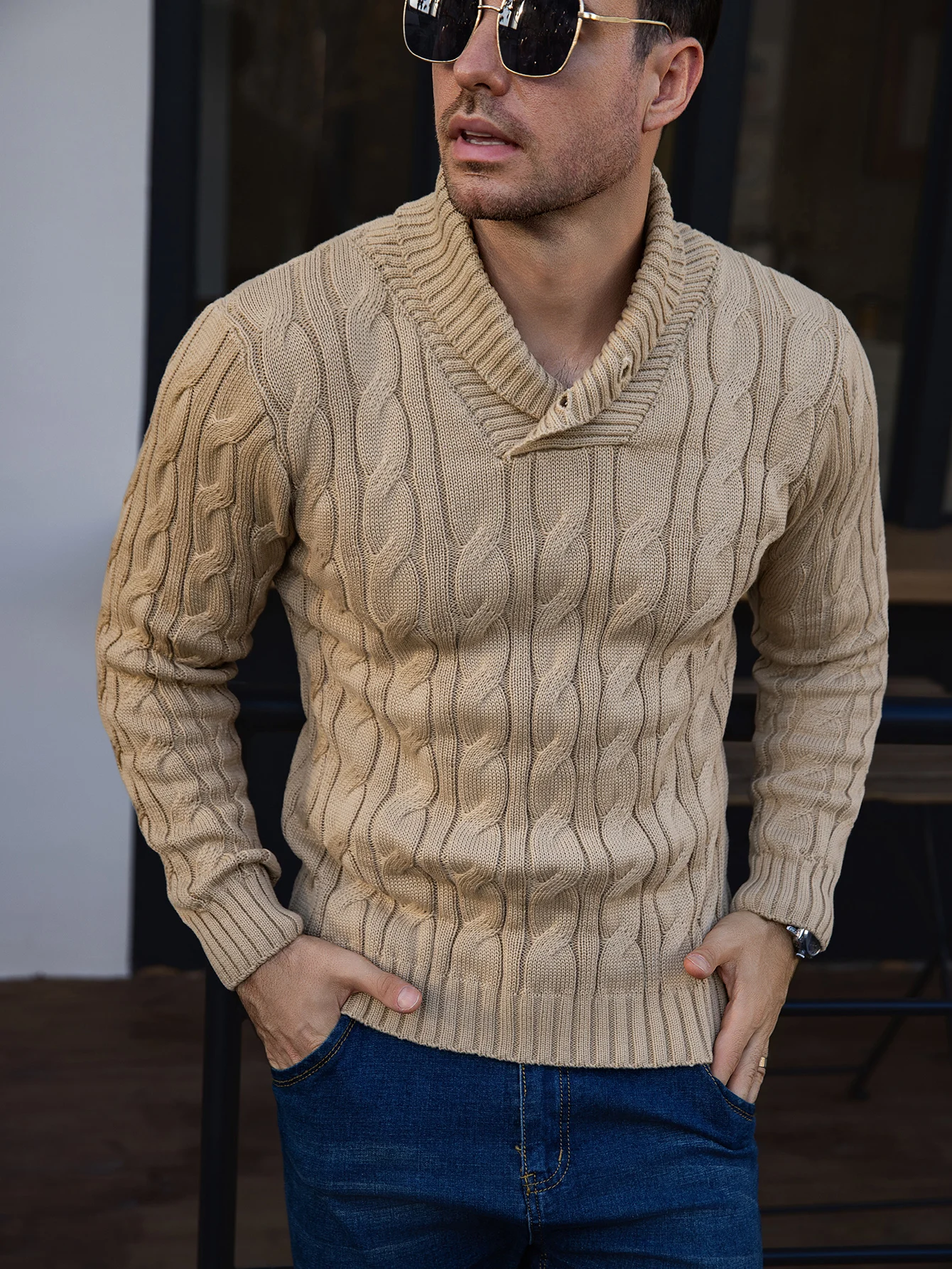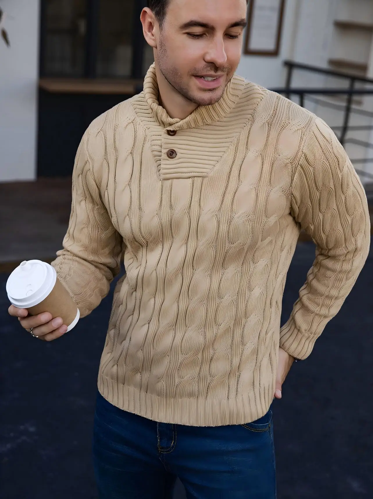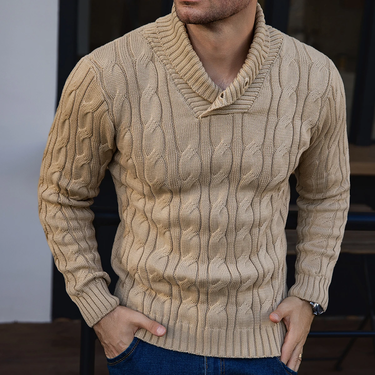Be the first to review “Men’s Ribbed Knitted Sweater Mature Business Solid Color Lapel Pullover for Autumn Winter Fashionable And Suitable for Various O”