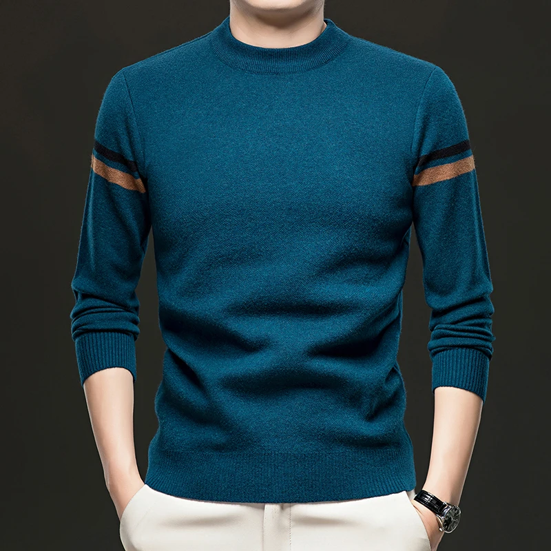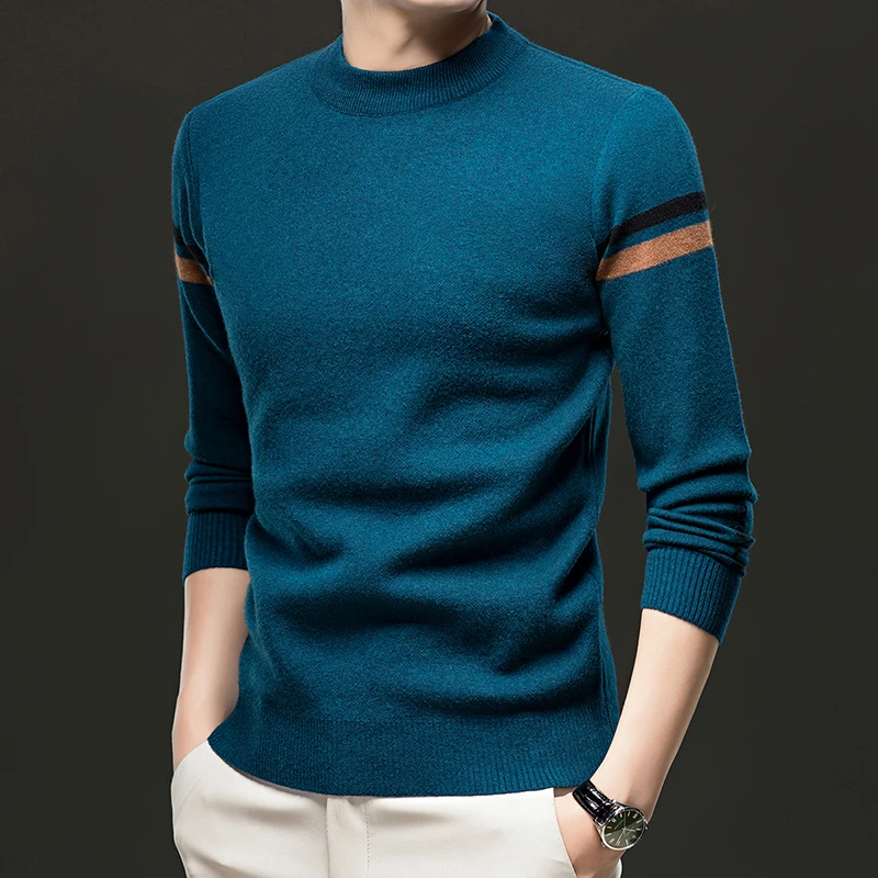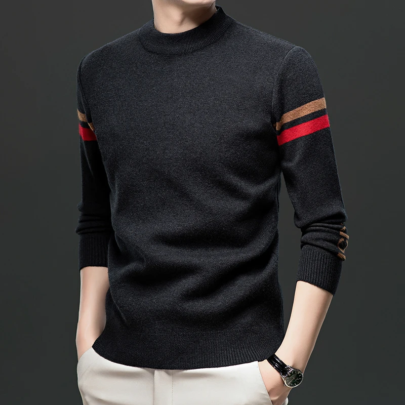 New Autumn and Winter Men’s Casual and Fashionable Long Sleeved Round Neck Knitted Sweater Warm and Versatile Top