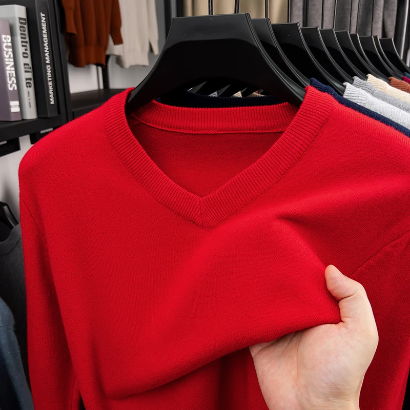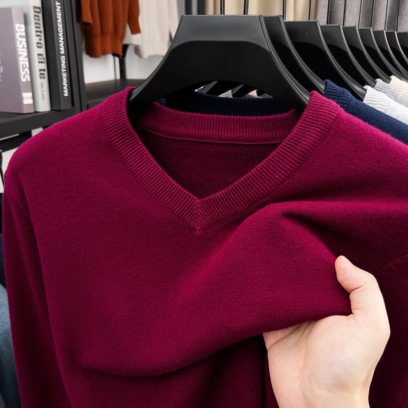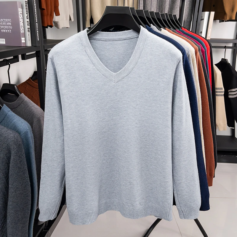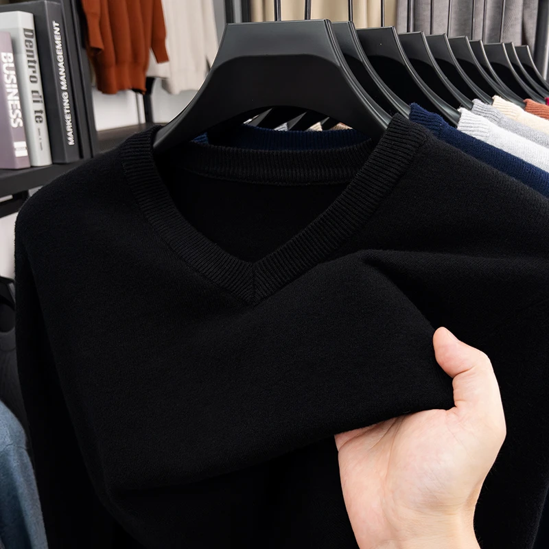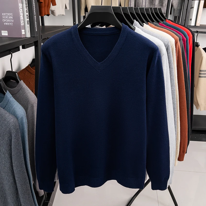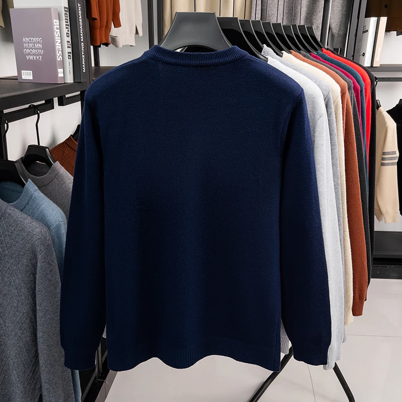 New Sweatwear Men’s V Neck Basic Solid Color Sweaters Round Neck Elastic Pullovers Warm Autumn Knitted Oversized Sweater Men