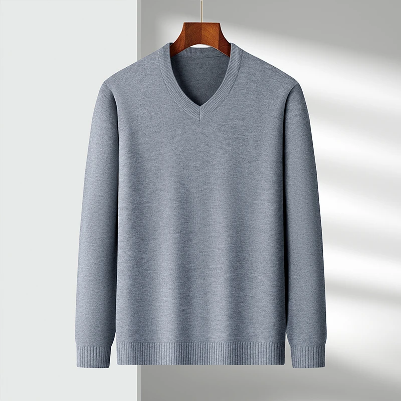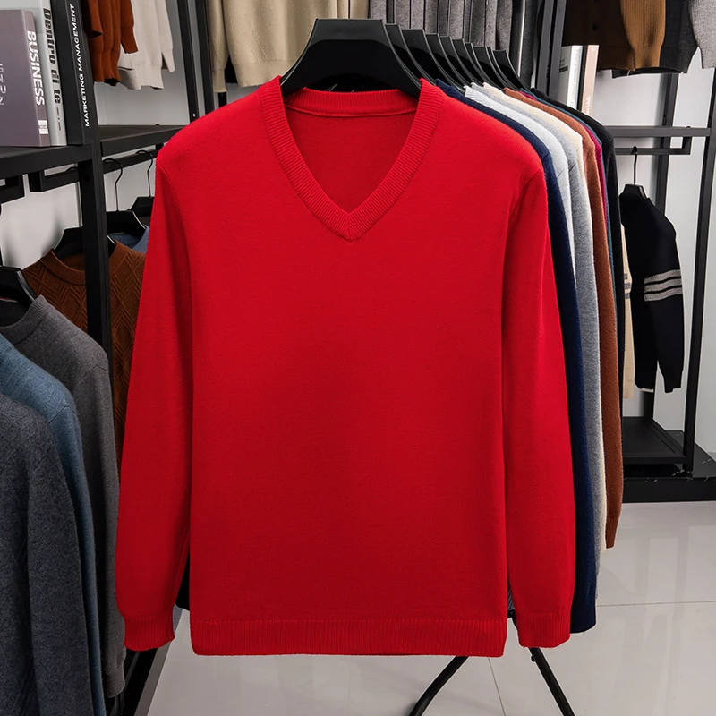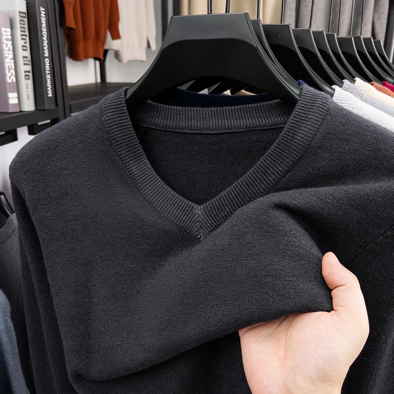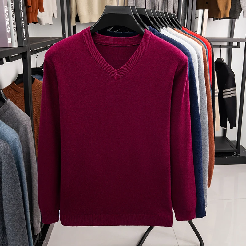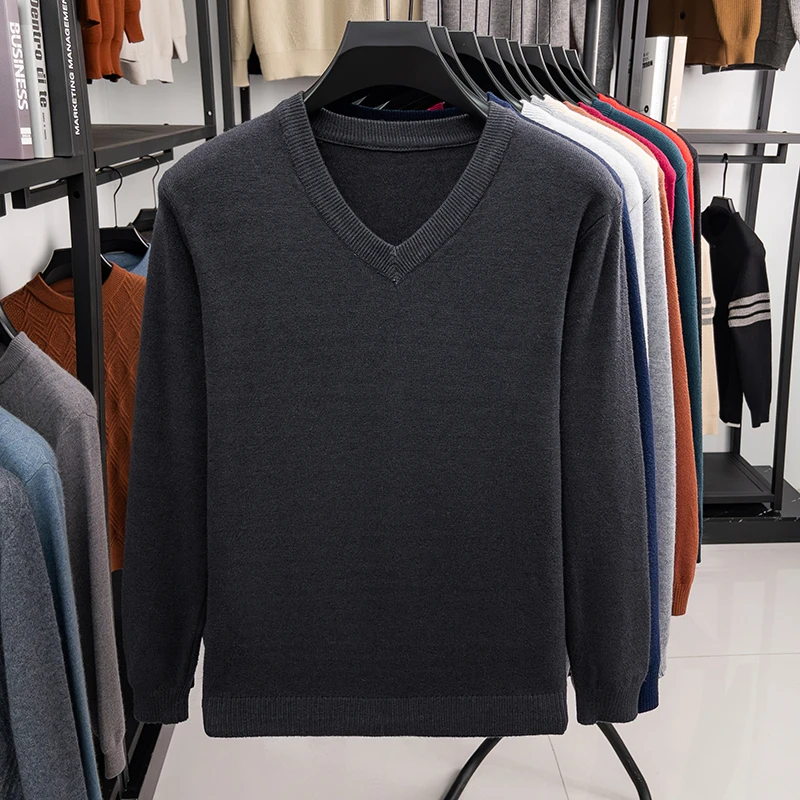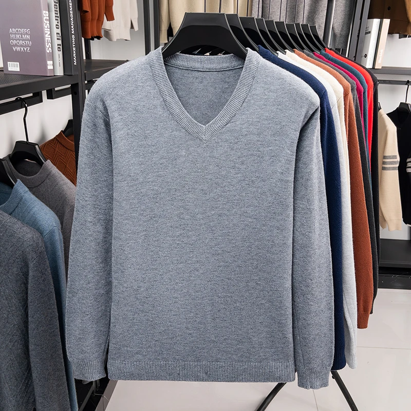 New Sweatwear Men’s V Neck Basic Solid Color Sweaters Round Neck Elastic Pullovers Warm Autumn Knitted Oversized Sweater Men