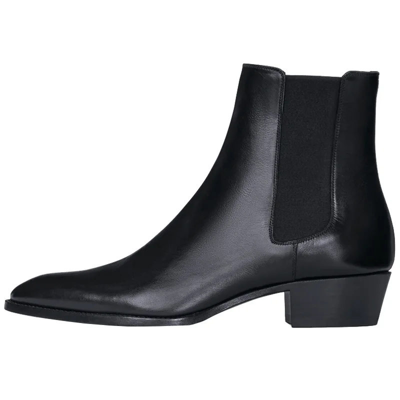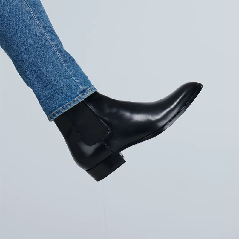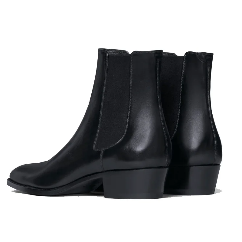 Real Leather Men Chelsea Boots Winter Handmade Cowhide Black Business Casual Classic Mid-heel Men Boots Botas Motociclista