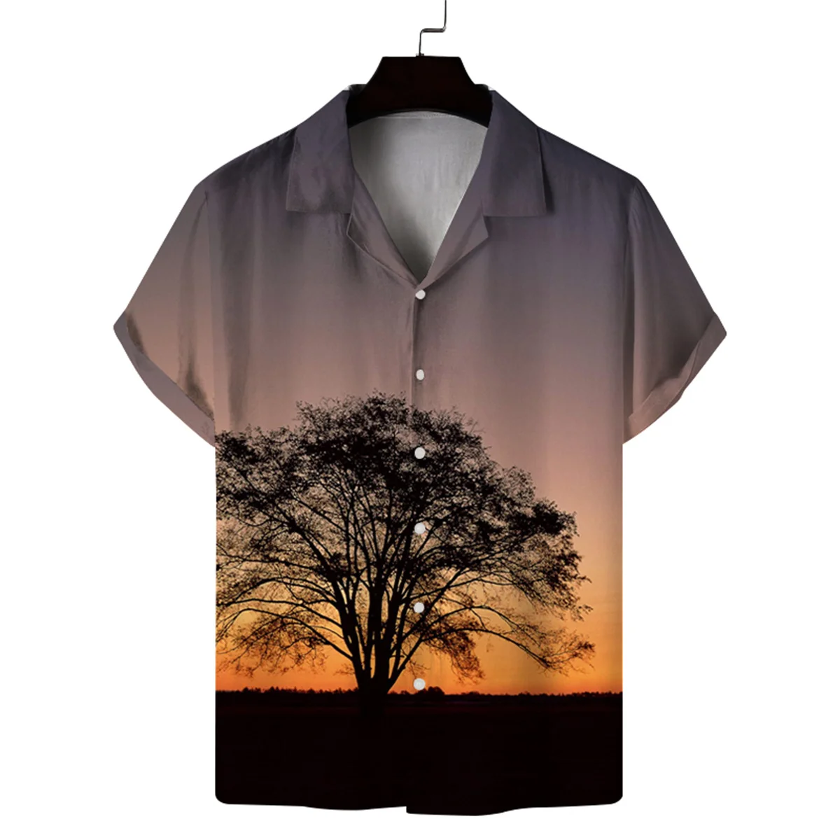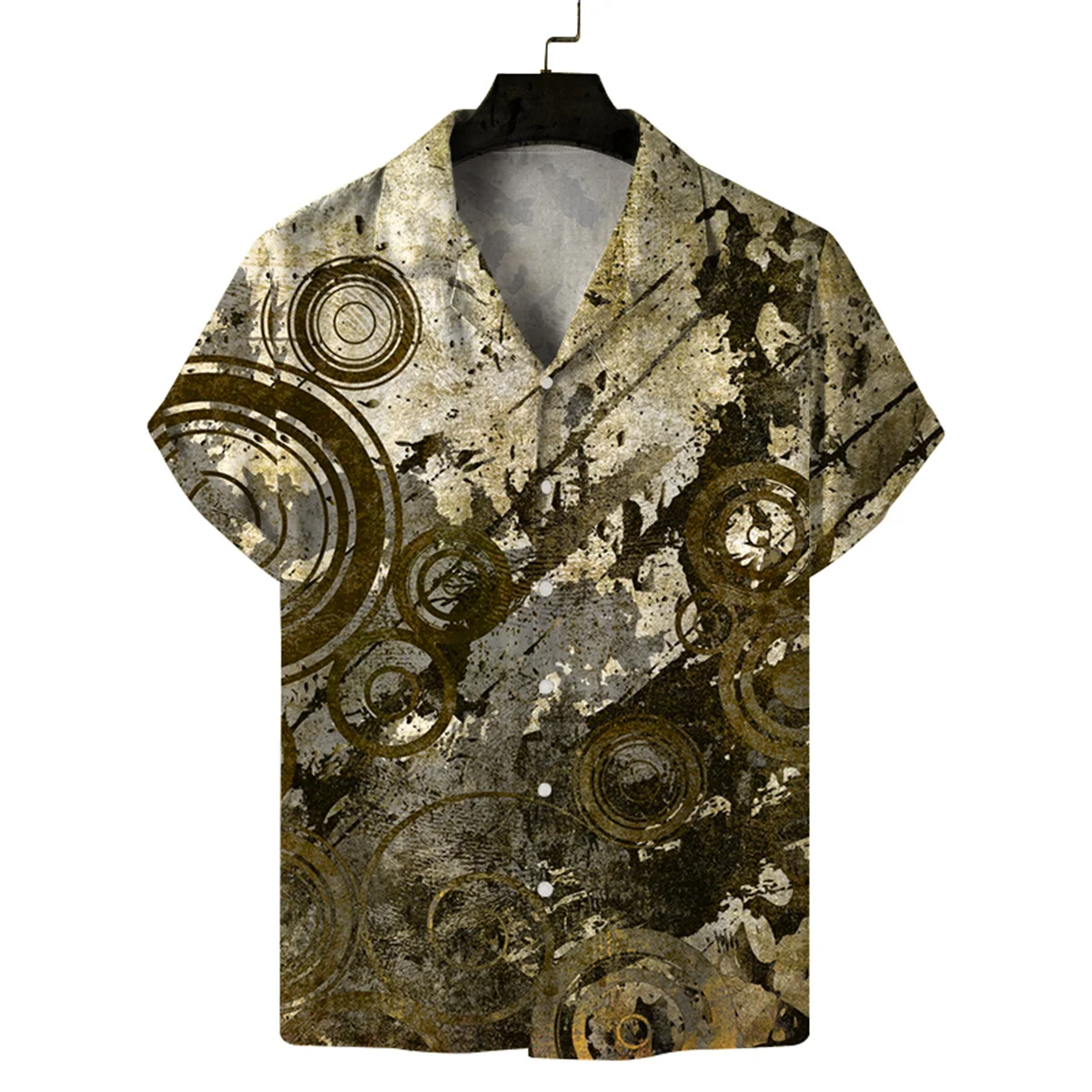 Summer men’s personalized short-sleeved shirt men’s printed Cuban casual Hawaiian collar beach shirt