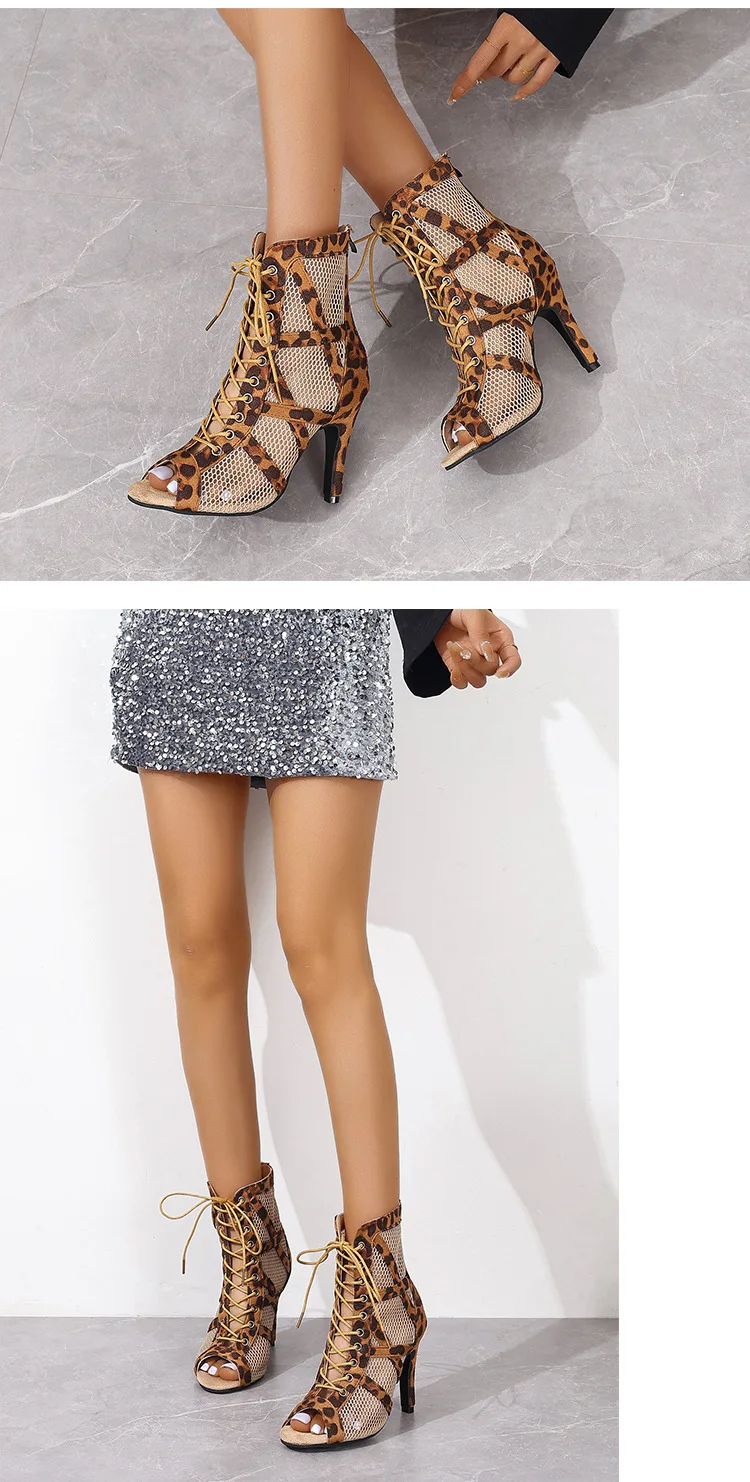 Summer New Large-size Women’s Stiletto High-heeled Sandals, Mesh Strap Fish Mouth Boots, Fashionable Versatile Cool Boots