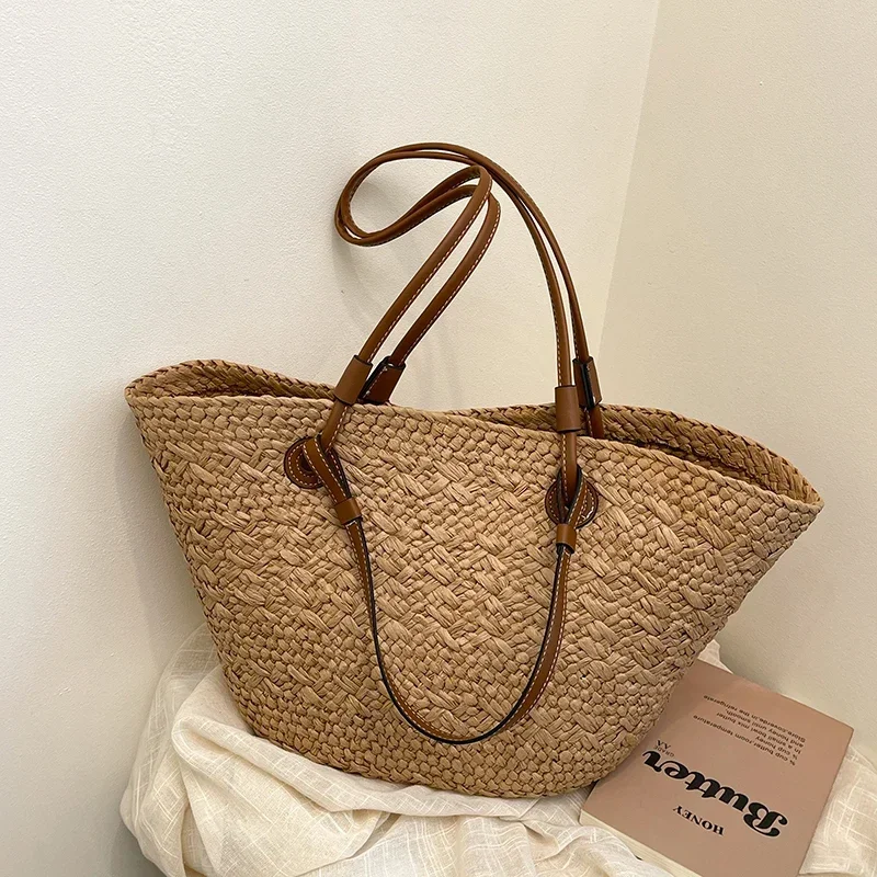 Summer Wicker Woven Basket Bags Rattan Women Handbags Handmade Summer Beach Straw Tote Bag Designer Shoulder Bag Khaki