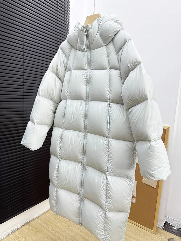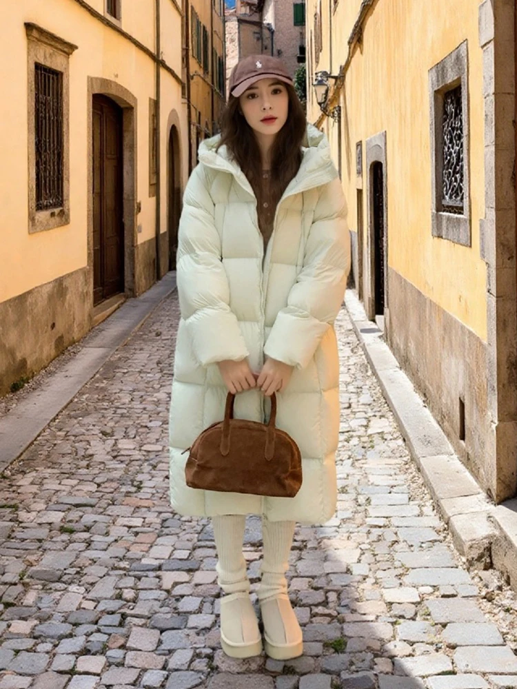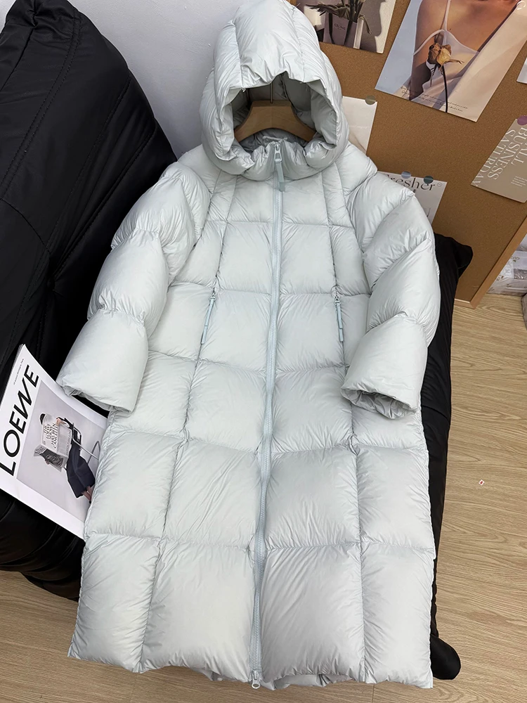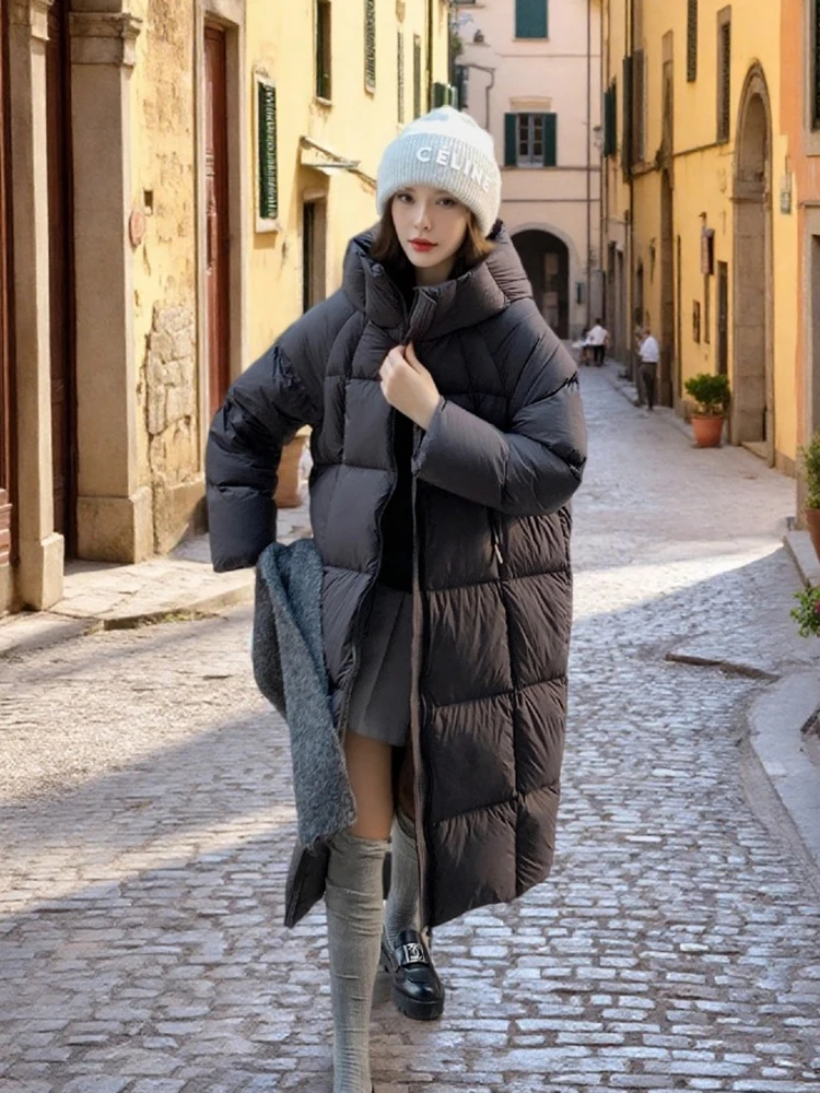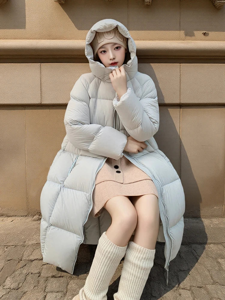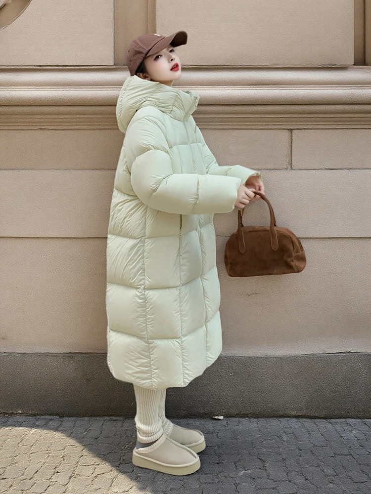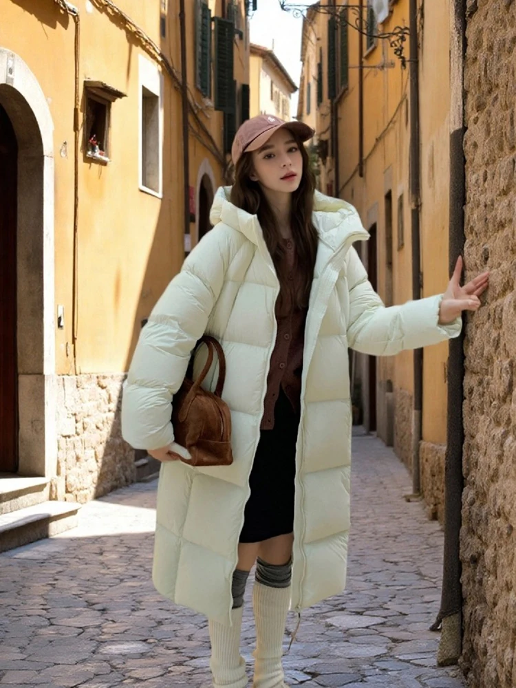 Winter -15°Warm Puff Hooded Long Down Jacket Women White Duck Down Outdoors Knee Length Jacket Female Thick Loose Parker Outwear