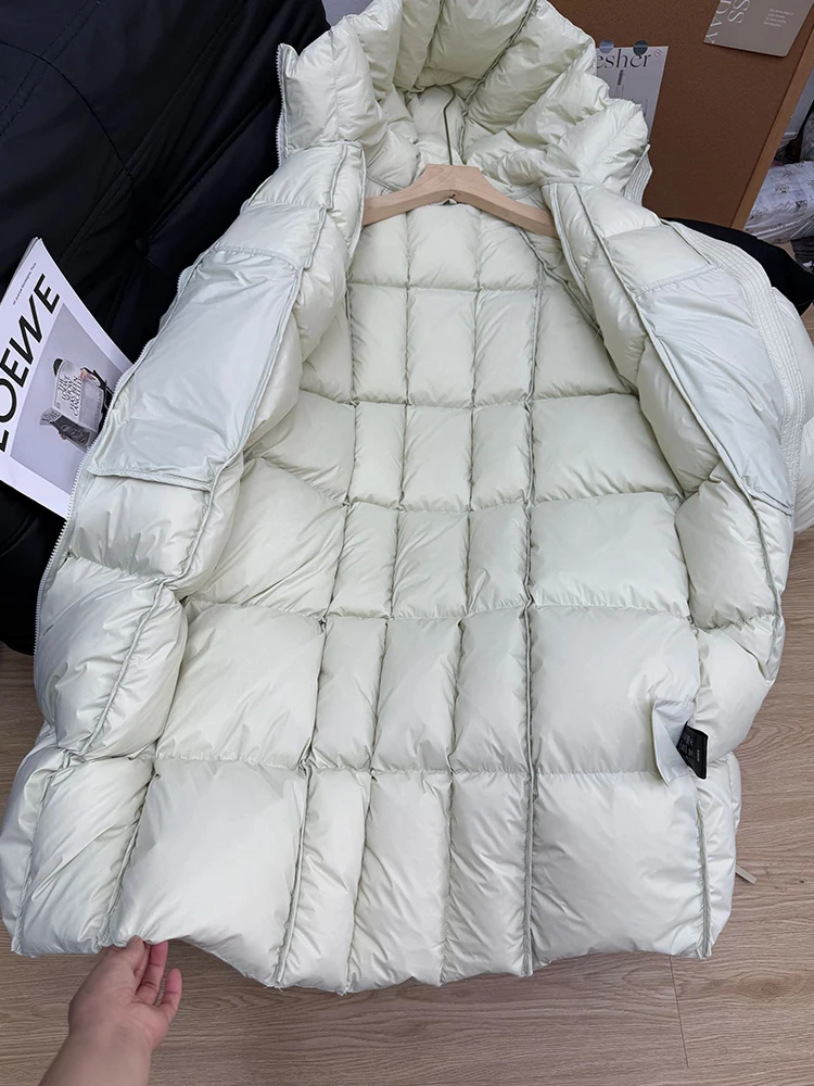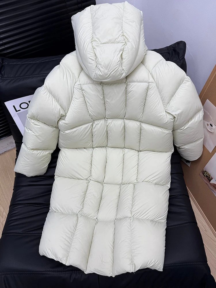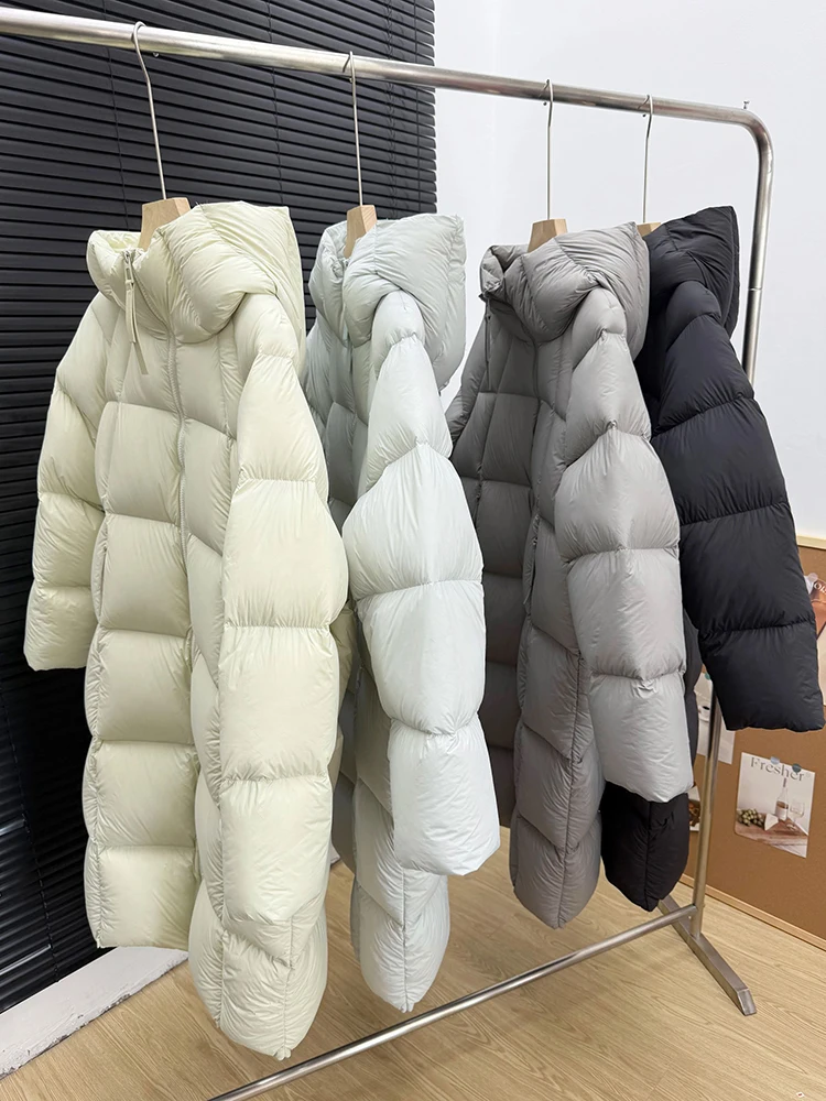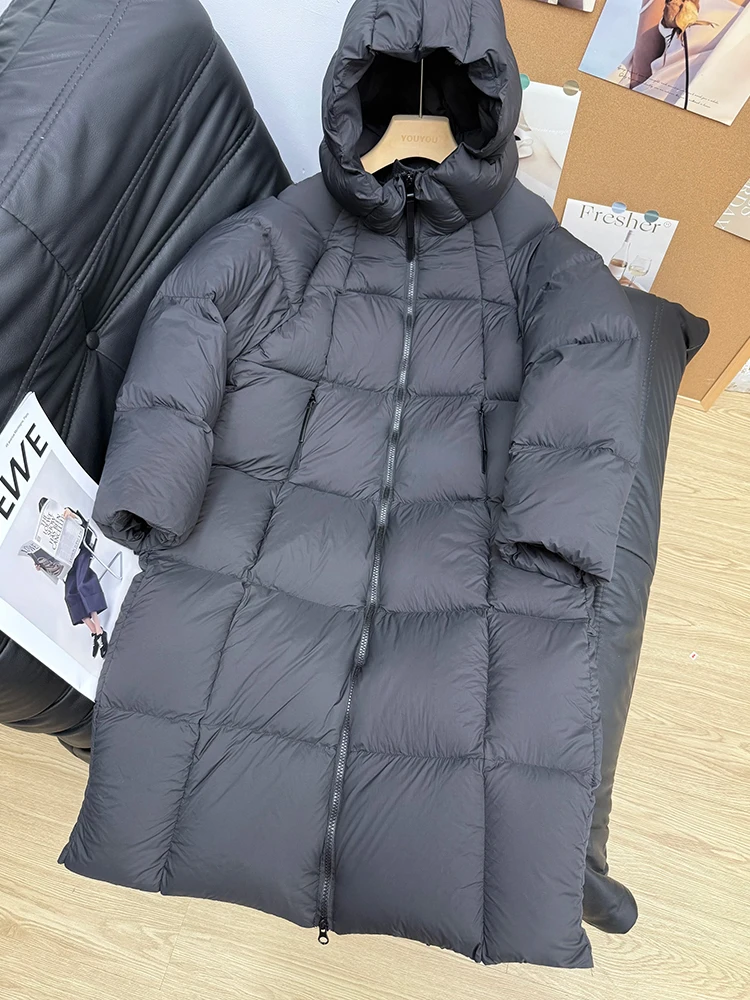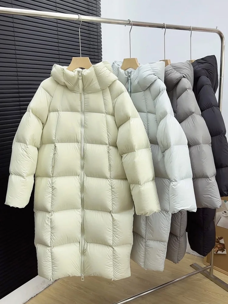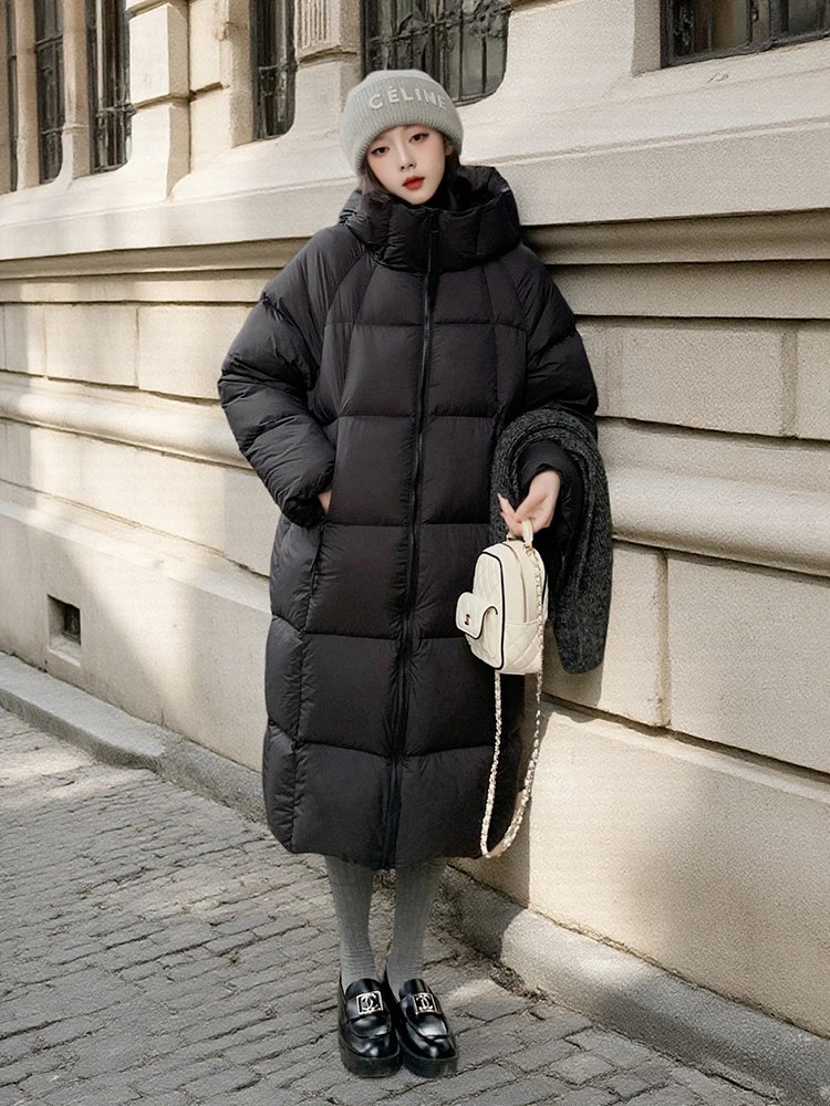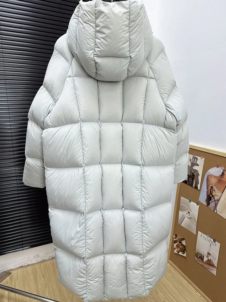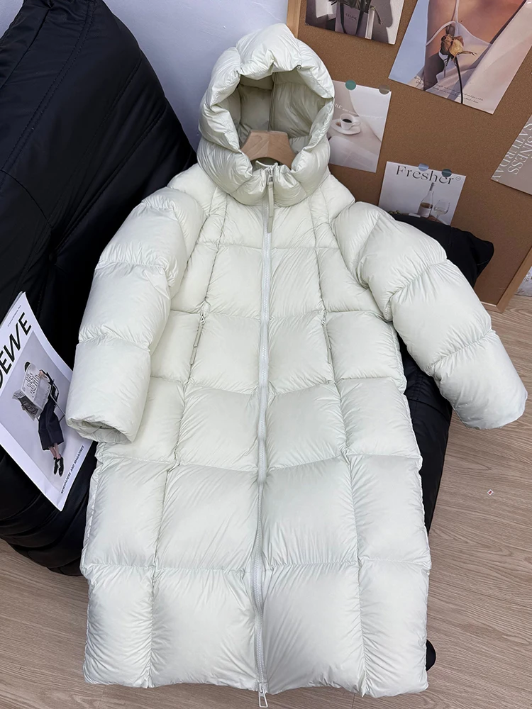 Winter -15°Warm Puff Hooded Long Down Jacket Women White Duck Down Outdoors Knee Length Jacket Female Thick Loose Parker Outwear