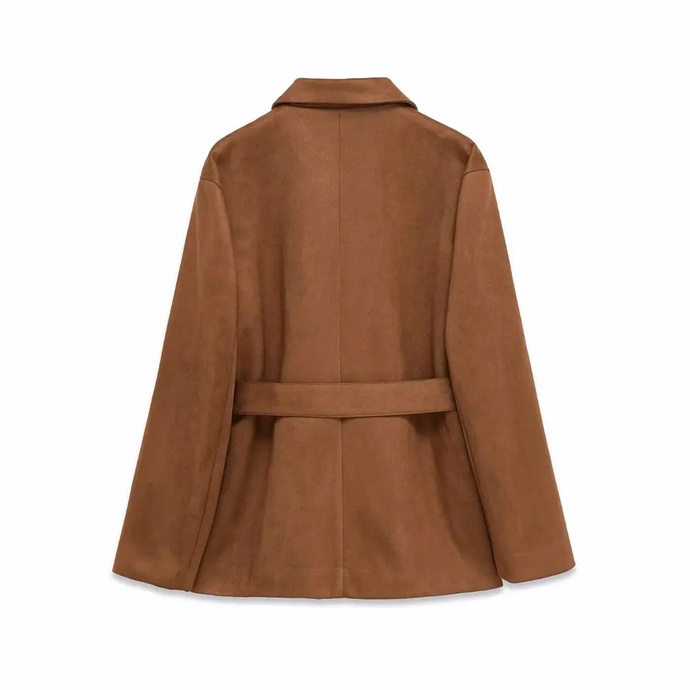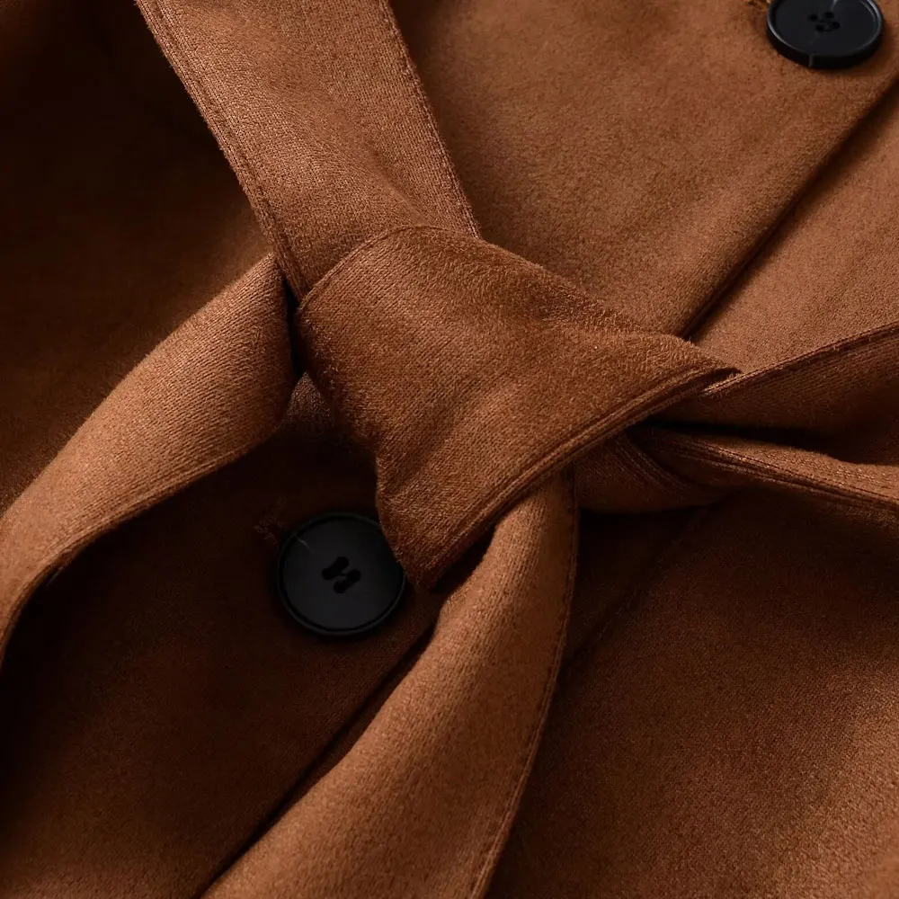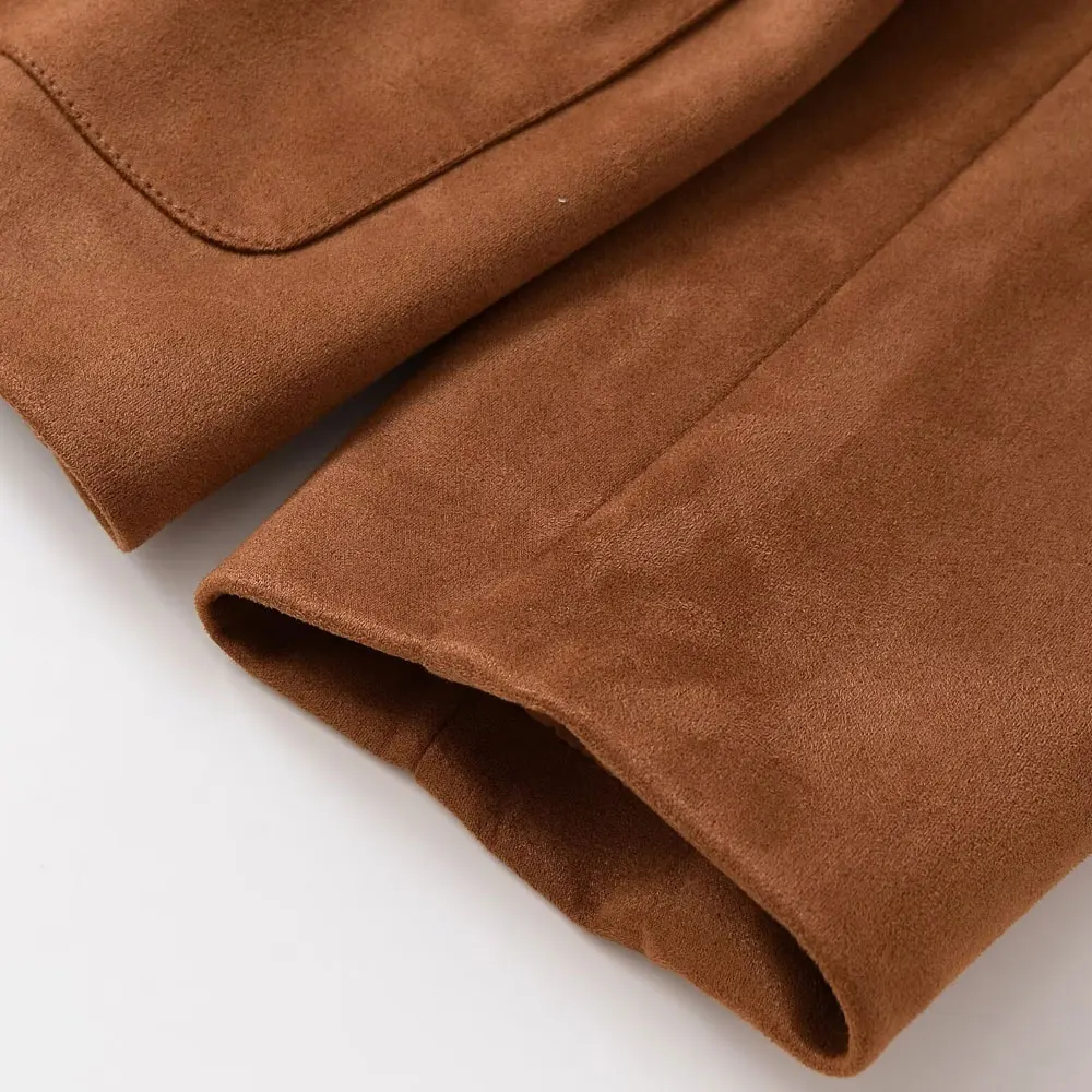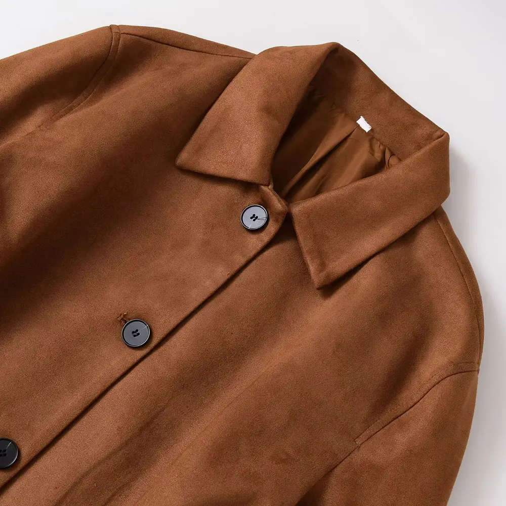 Women’s Faux Suede Jacket Coat with Belt Long Sleeve Front Pocket Chic Outerwear Female Tops